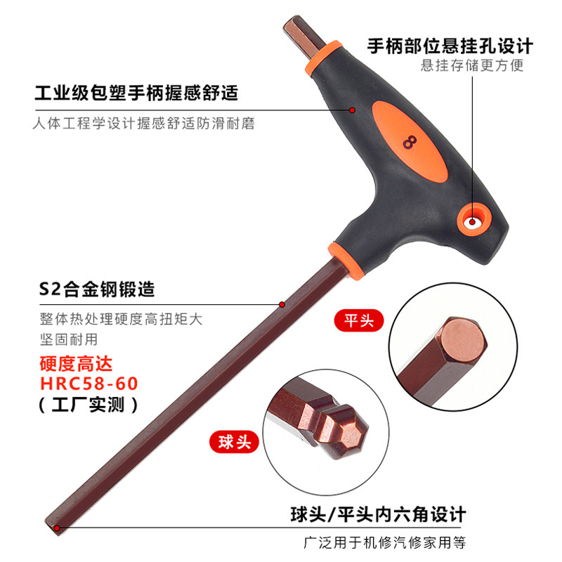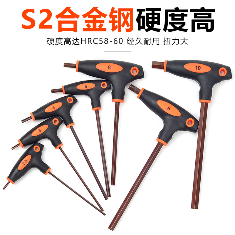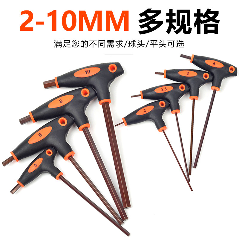 t型内六角扳手单个套装加长平头球头内六方螺丝刀6棱起子高强度s2