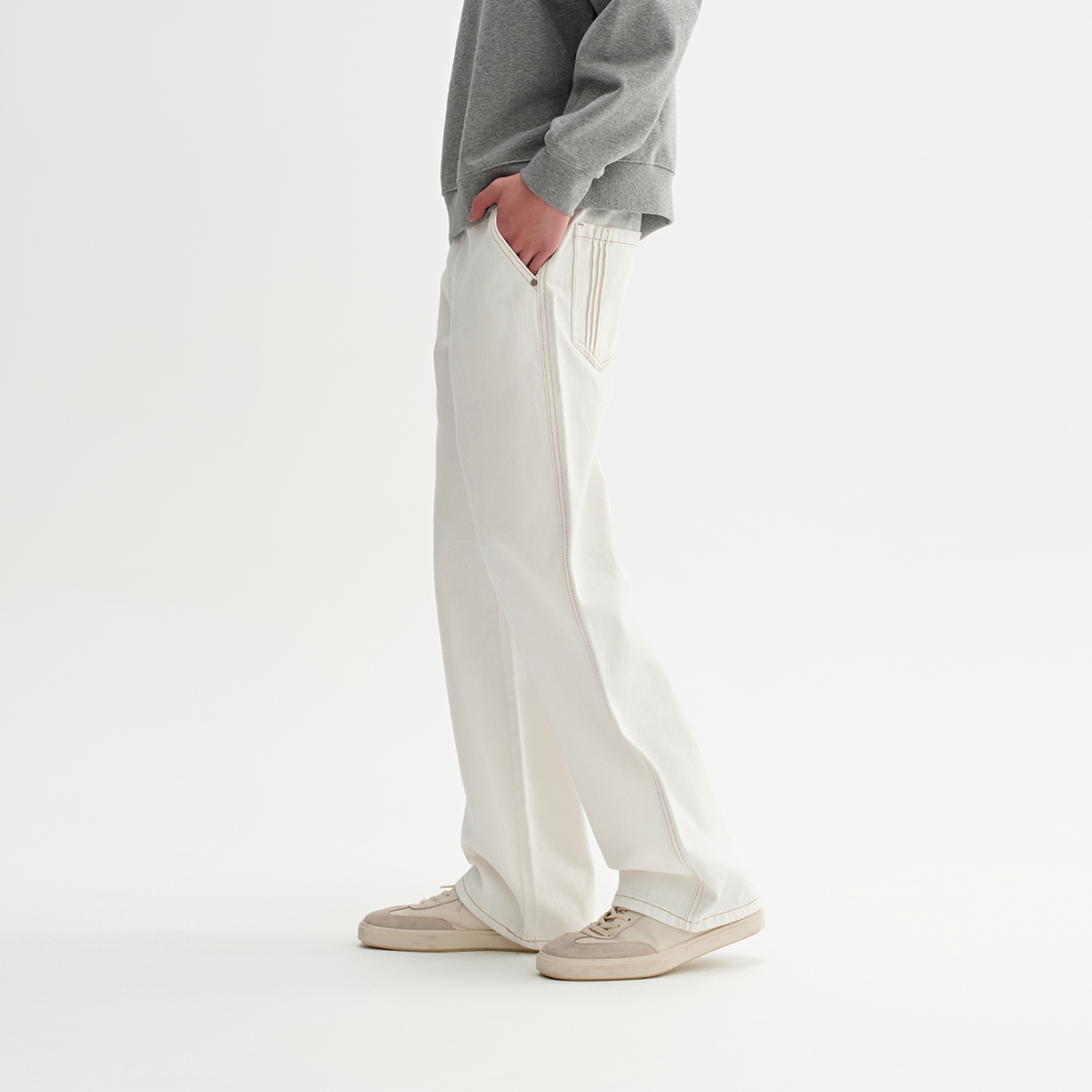 CHINISM赤尘 白色牛仔裤男美式新款休闲直筒宽松裤子复古男士长裤