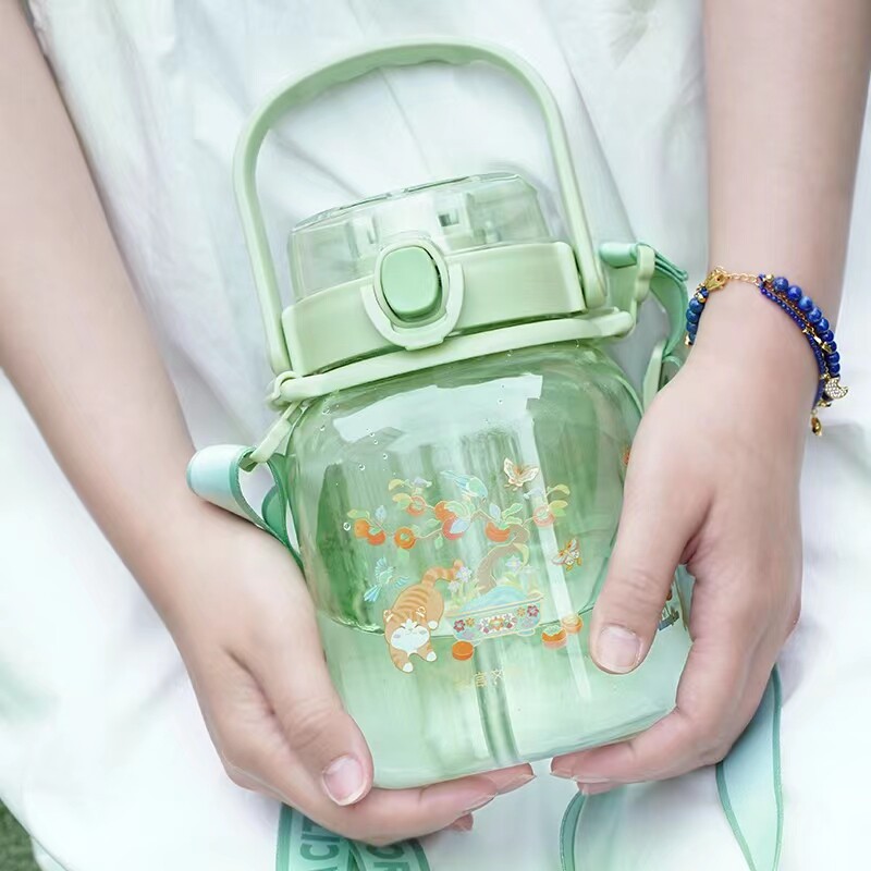 故宫萌猫如意吨吨壶 橘色绿色大容量水杯水壶户外露营旅游饮水用