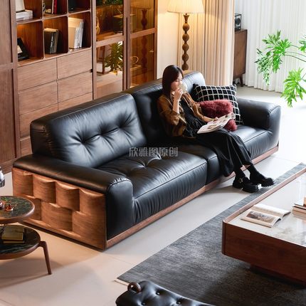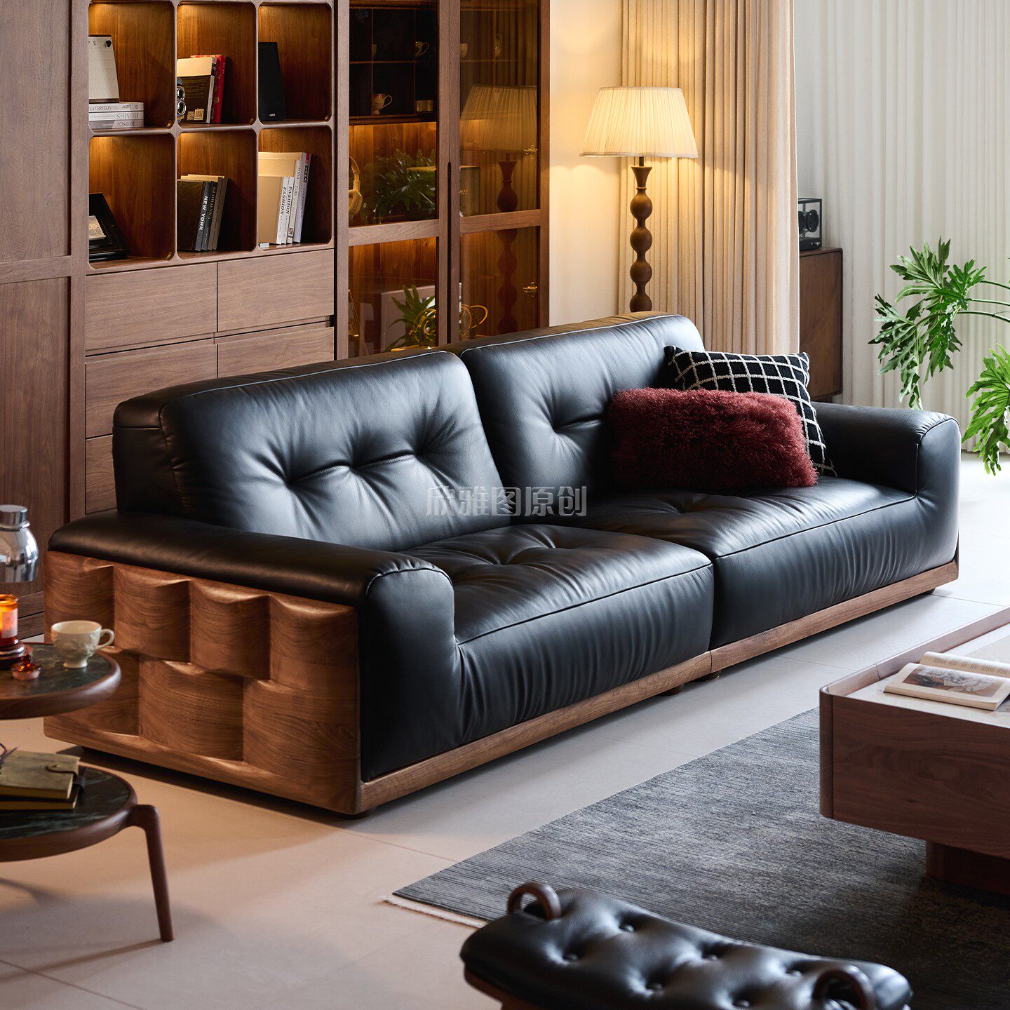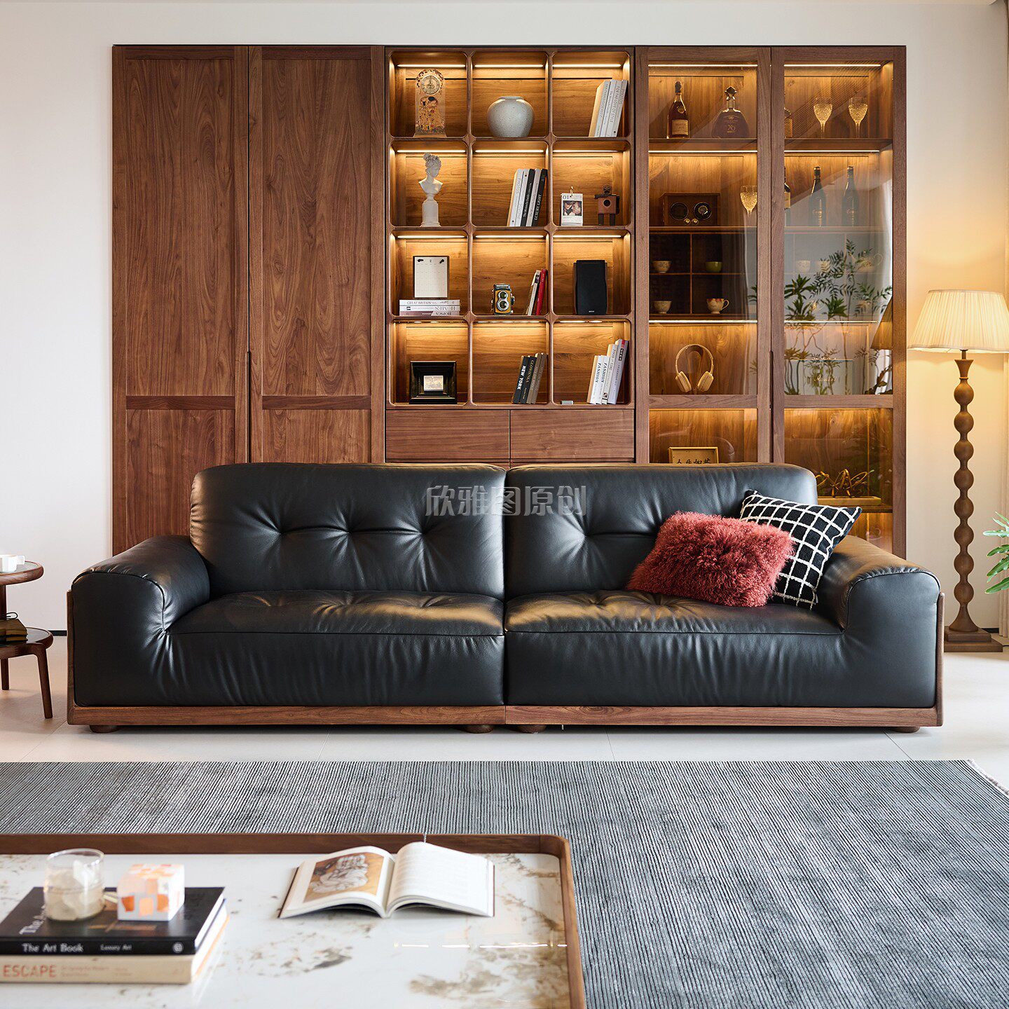 北美黑胡桃木沙发别墅大横厅客厅实木真皮直排沙发四人位2026新款