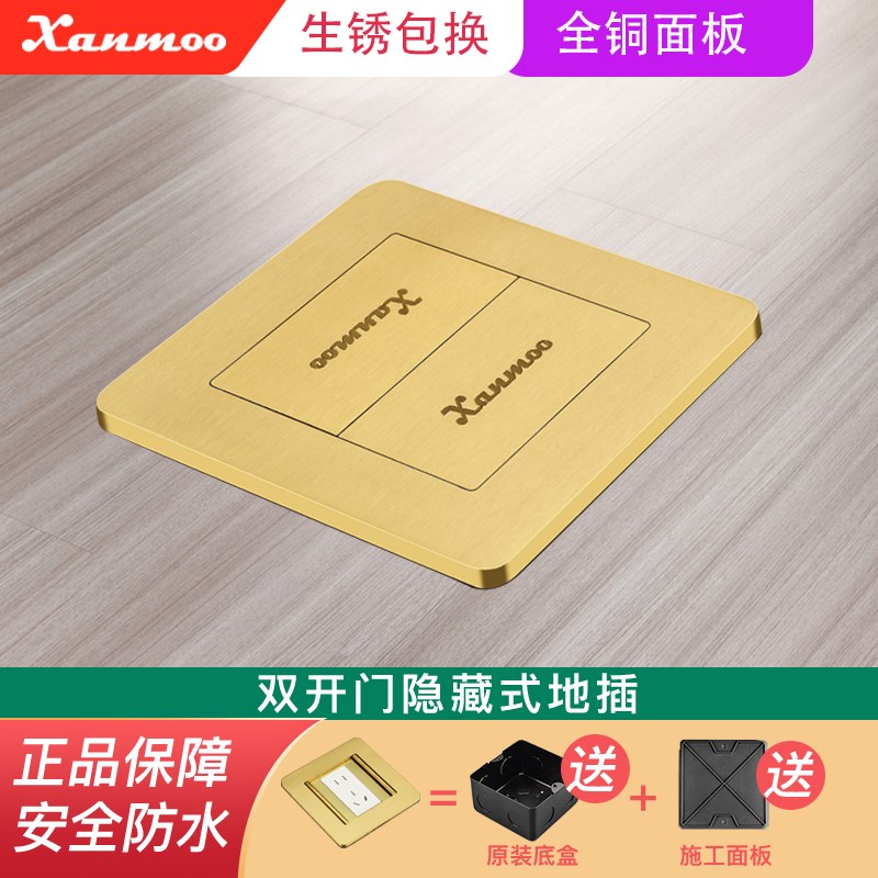 地插双开门隐藏式防水耐磨不锈钢灰色电源地插座地板五孔地面插座