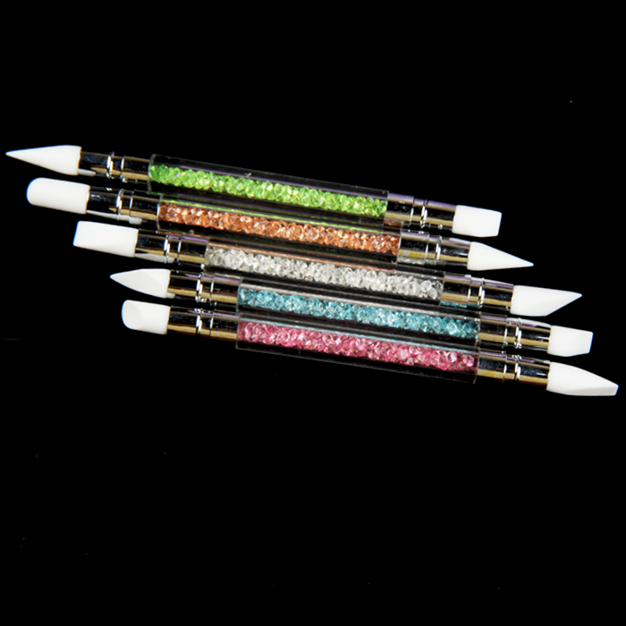 美甲雕花笔镂空雕刻压花笔带水钻五只双头魔镜粉硅胶笔压花棒