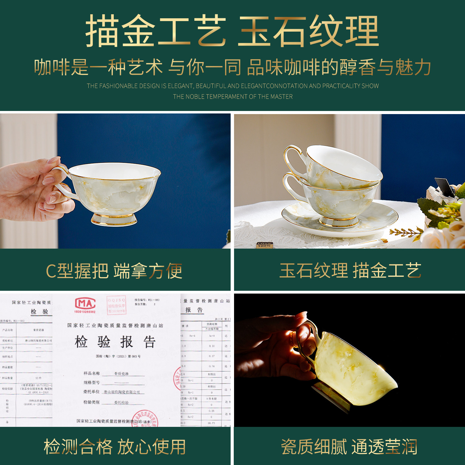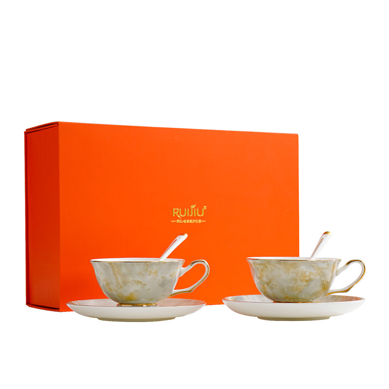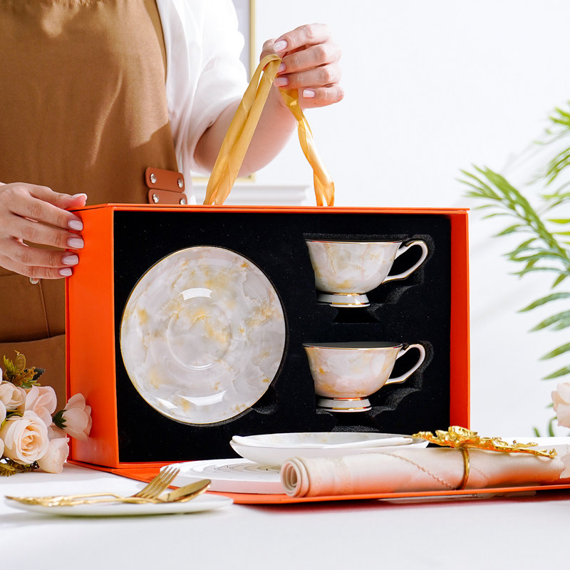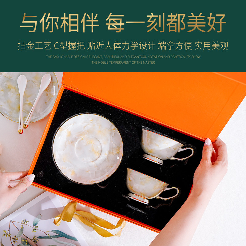 轻奢骨瓷咖啡杯碟套装手工描金下午茶杯碟勺牛奶早餐杯碟礼盒送礼