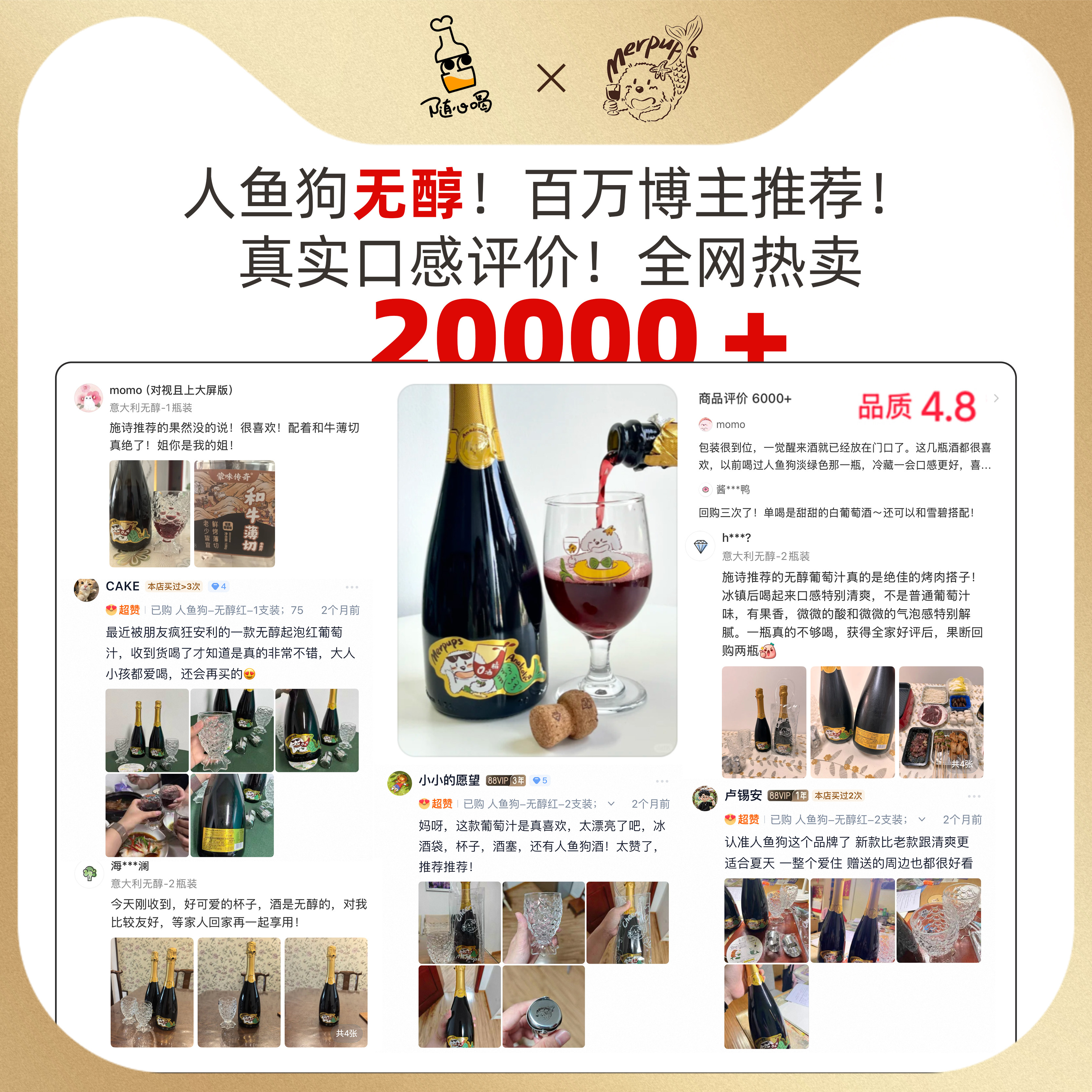 随心喝-人鱼狗无醇红葡萄起泡酒(玫瑰车厘子)0酒精意大利进口