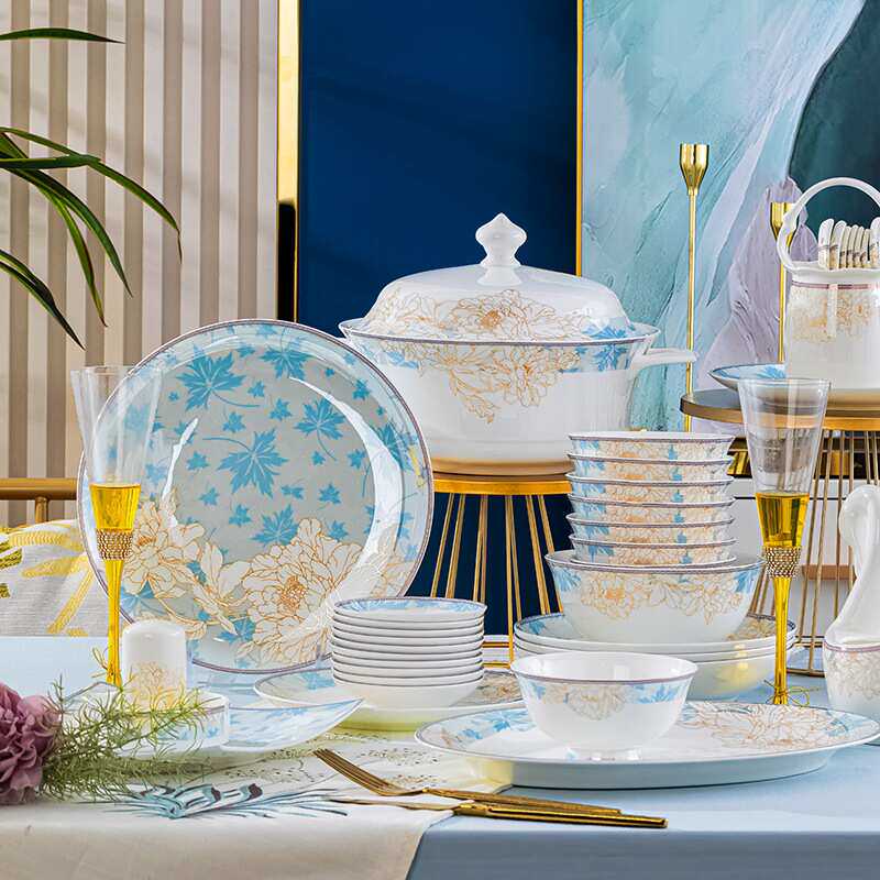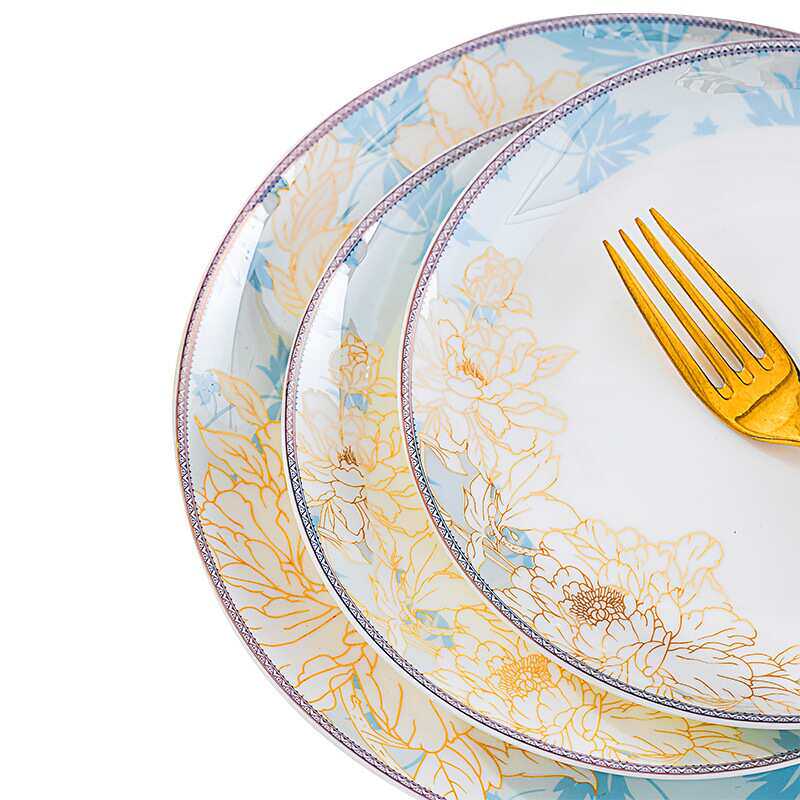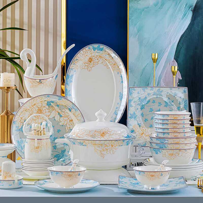 碗碟套装家用高端简约金边碗筷景德镇陶瓷器骨瓷餐具北欧轻奢碗盘