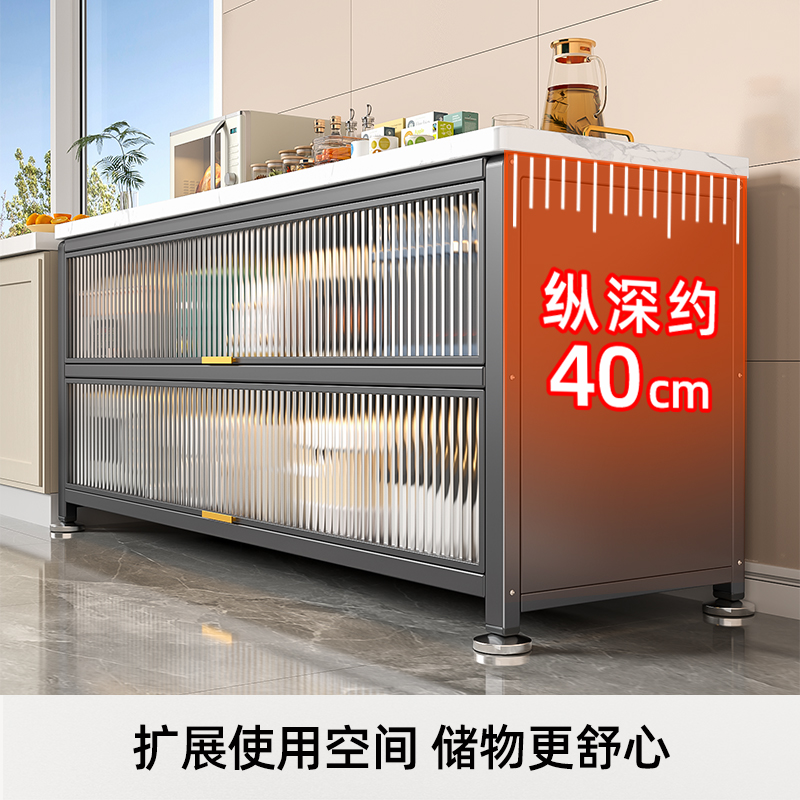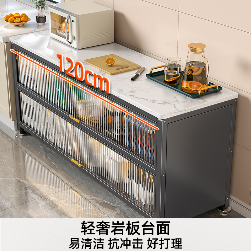 厨房置物架落地多层岩板橱柜收纳柜多功能切菜柜子储物柜靠墙一体