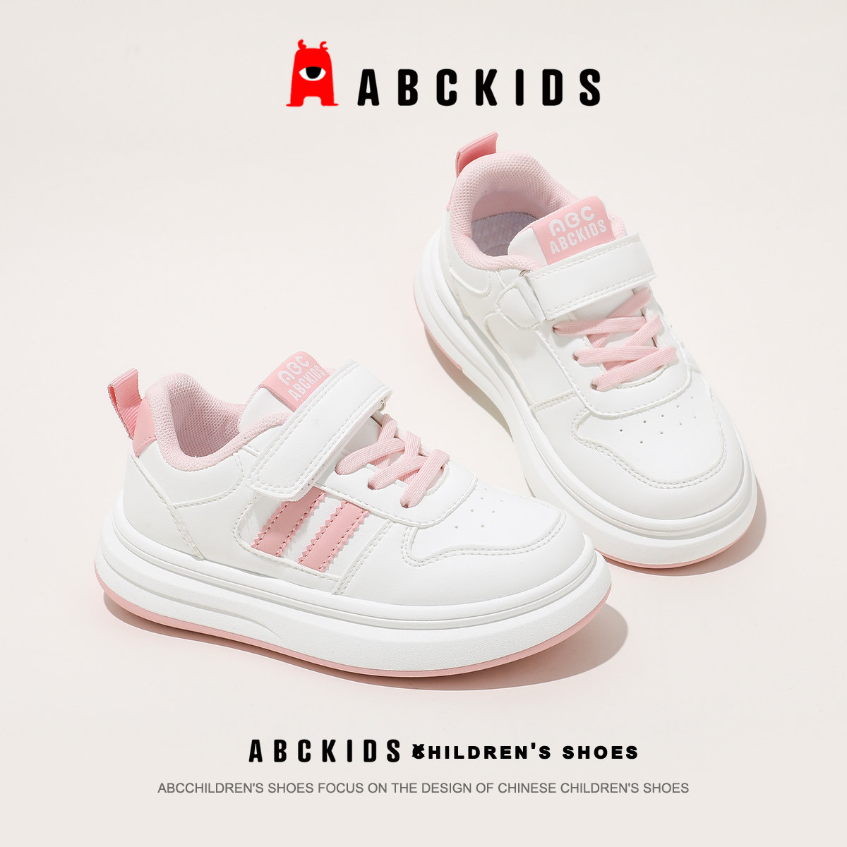 ABCkids儿童女童休闲风百搭小白鞋2026年春季新款男童轻便板鞋