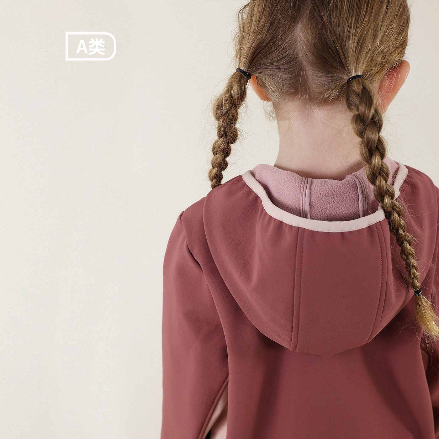 允儿妈女童冬季软壳连帽加绒防风服儿童时尚冲锋衣宝宝洋气外套潮