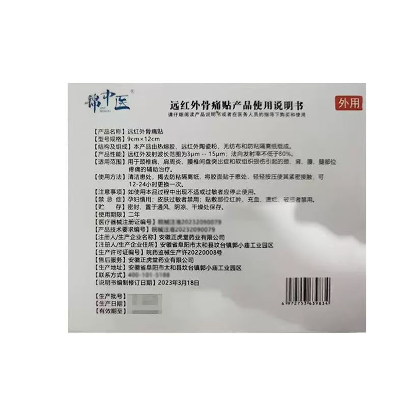 正品】锦中医远红外骨痛贴腰椎型4贴/盒皮肤外用贴膏辅助理疗