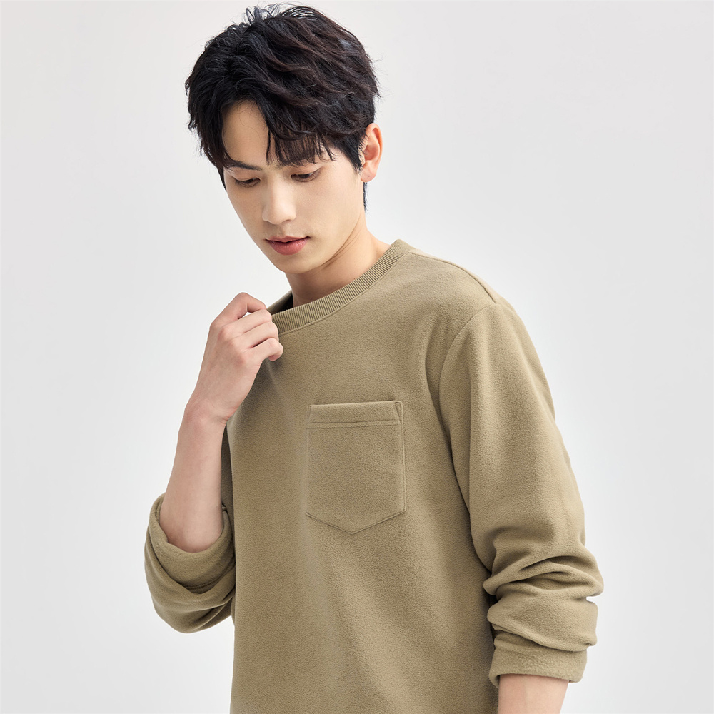 佐丹奴T恤男装摇粒绒单口袋针织圆领长袖T恤 13024613