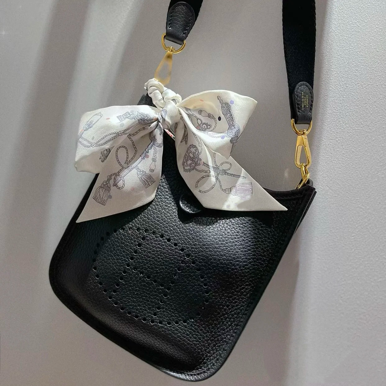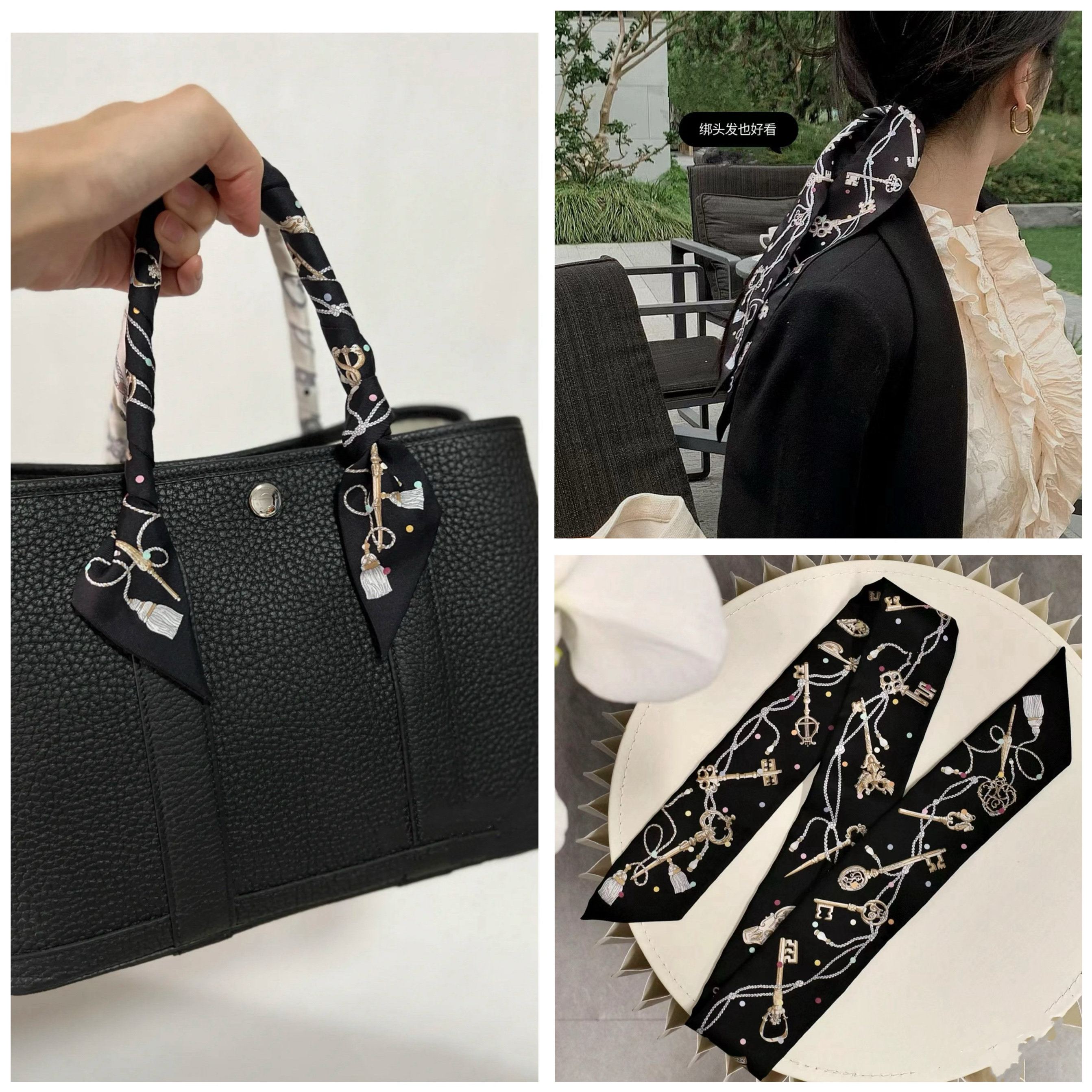 黑钥匙印花小丝巾改造包包链条手柄飘带装饰领巾韩式发带缠包丝带