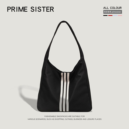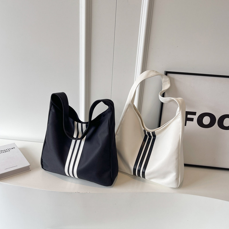 帆布布大容量女三条杠条纹简约休闲单肩包百搭流行运动通勤托特包