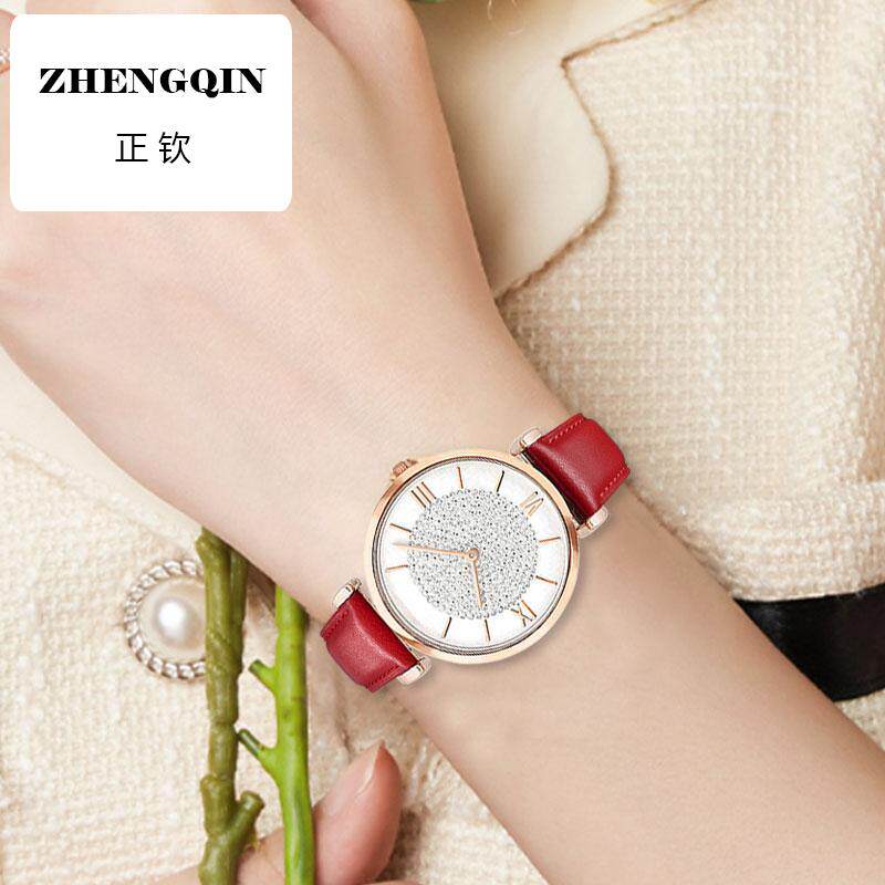 适用于阿玛尼白月光满天星AR11244满天星表带真皮平纹红色女14mm