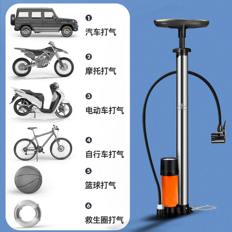永久打气筒自行车家用高压泵脚踩便携电瓶车摩托车篮球管子充气筒