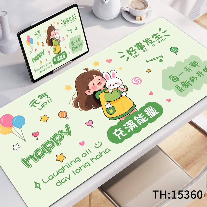 卡通文字鼠标垫超大号女生可爱办公电脑桌垫家用宿舍键盘垫子定制