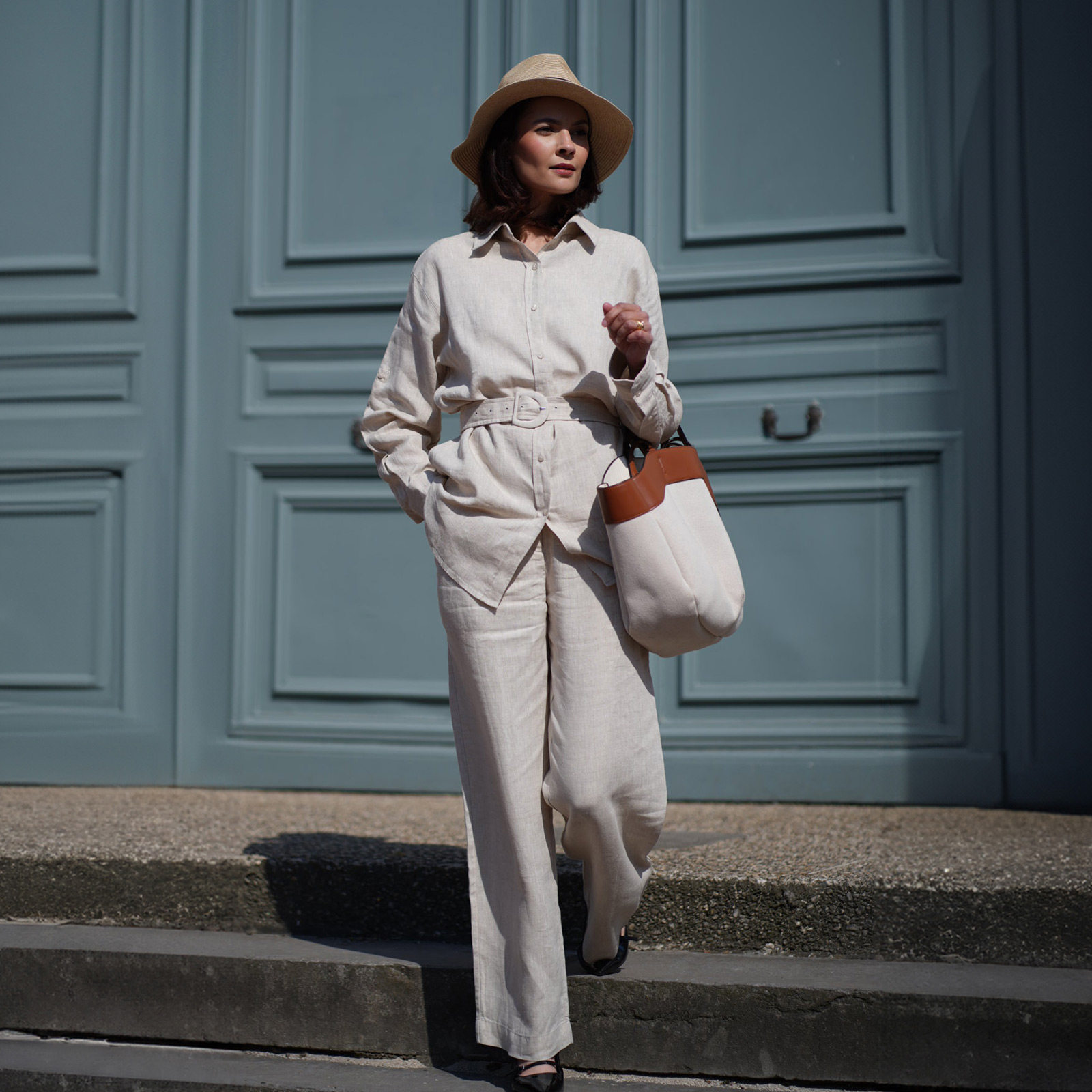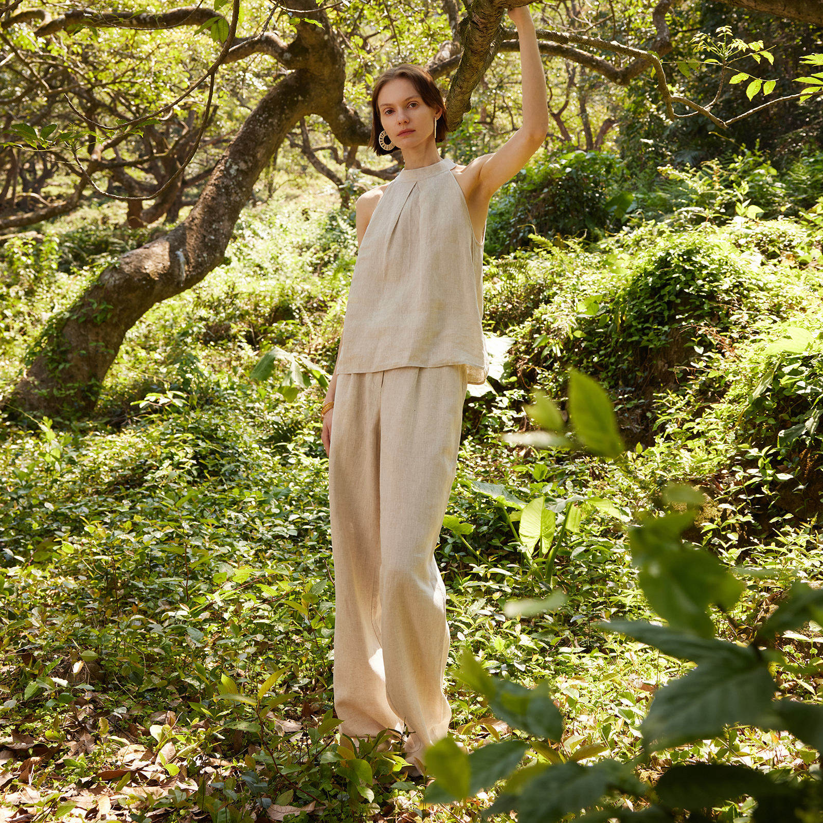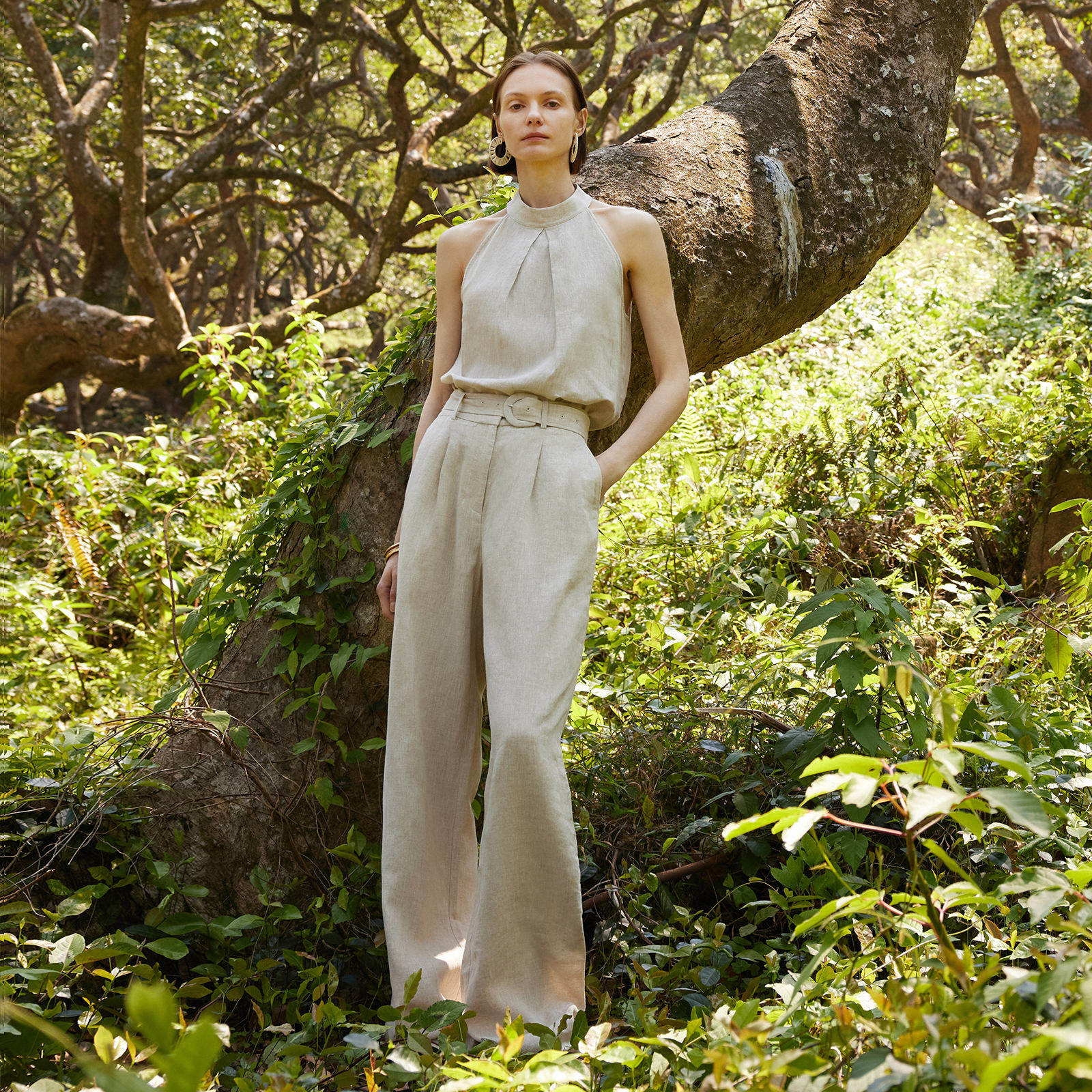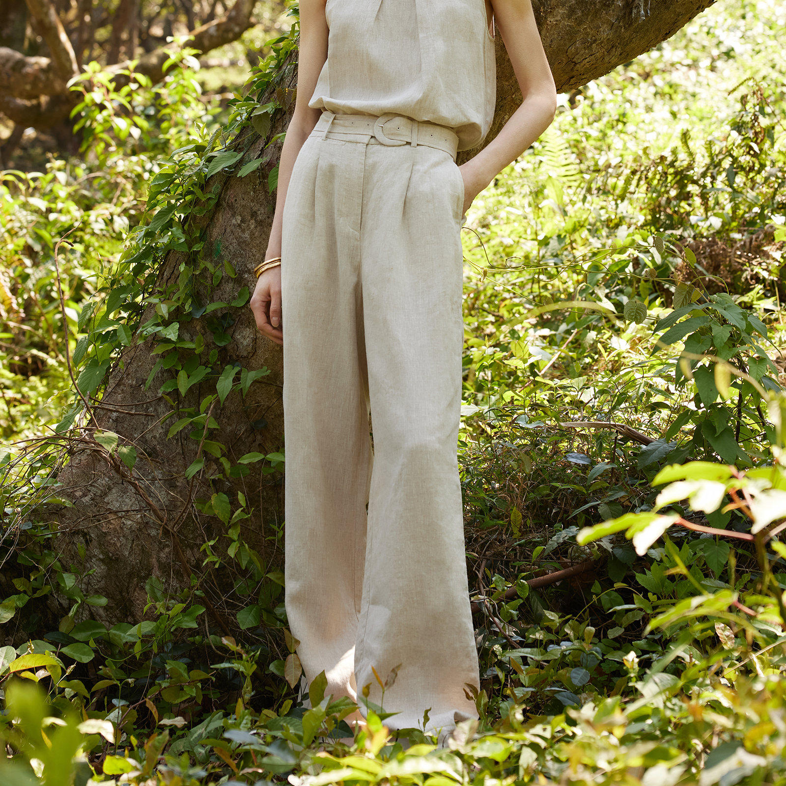 歌莉娅夏季通勤高腰直筒亚麻长裤