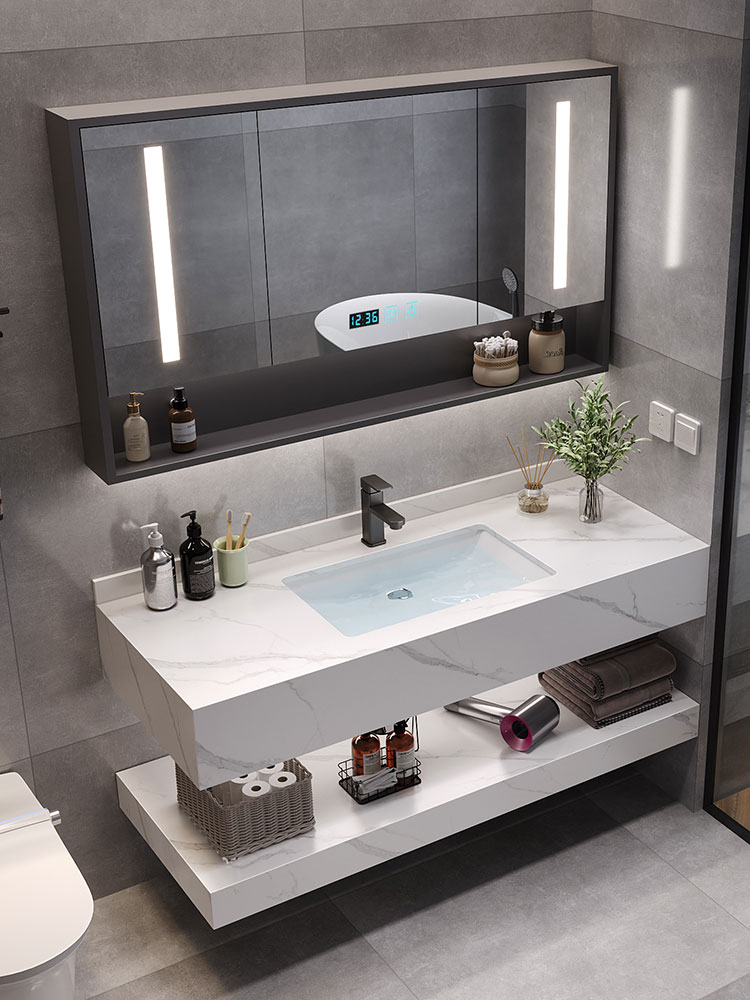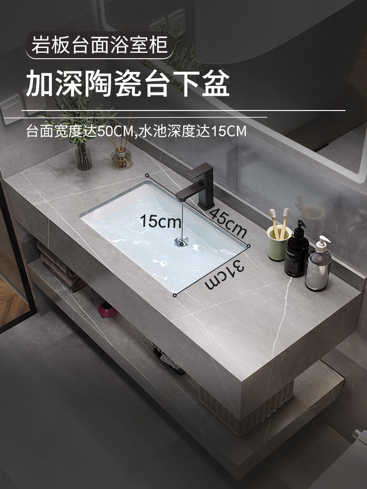 简约浴室柜组合现代岩板陶瓷盆卫生间洗手池洗脸池洗漱台卫浴套装