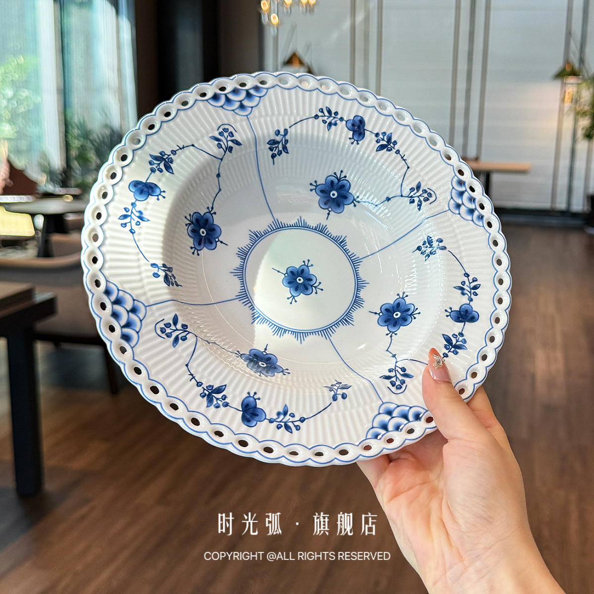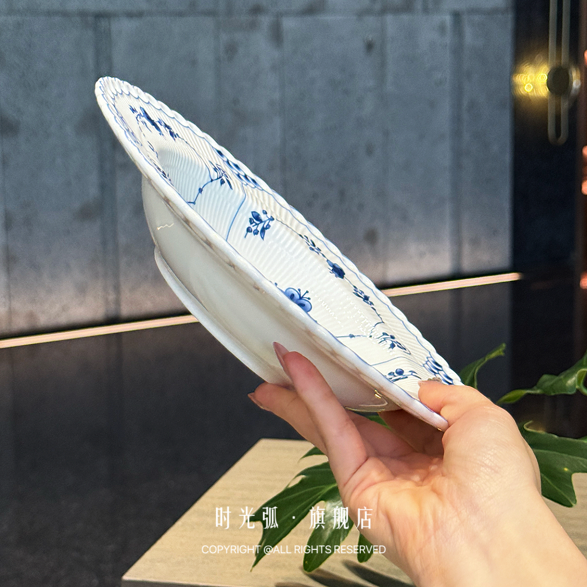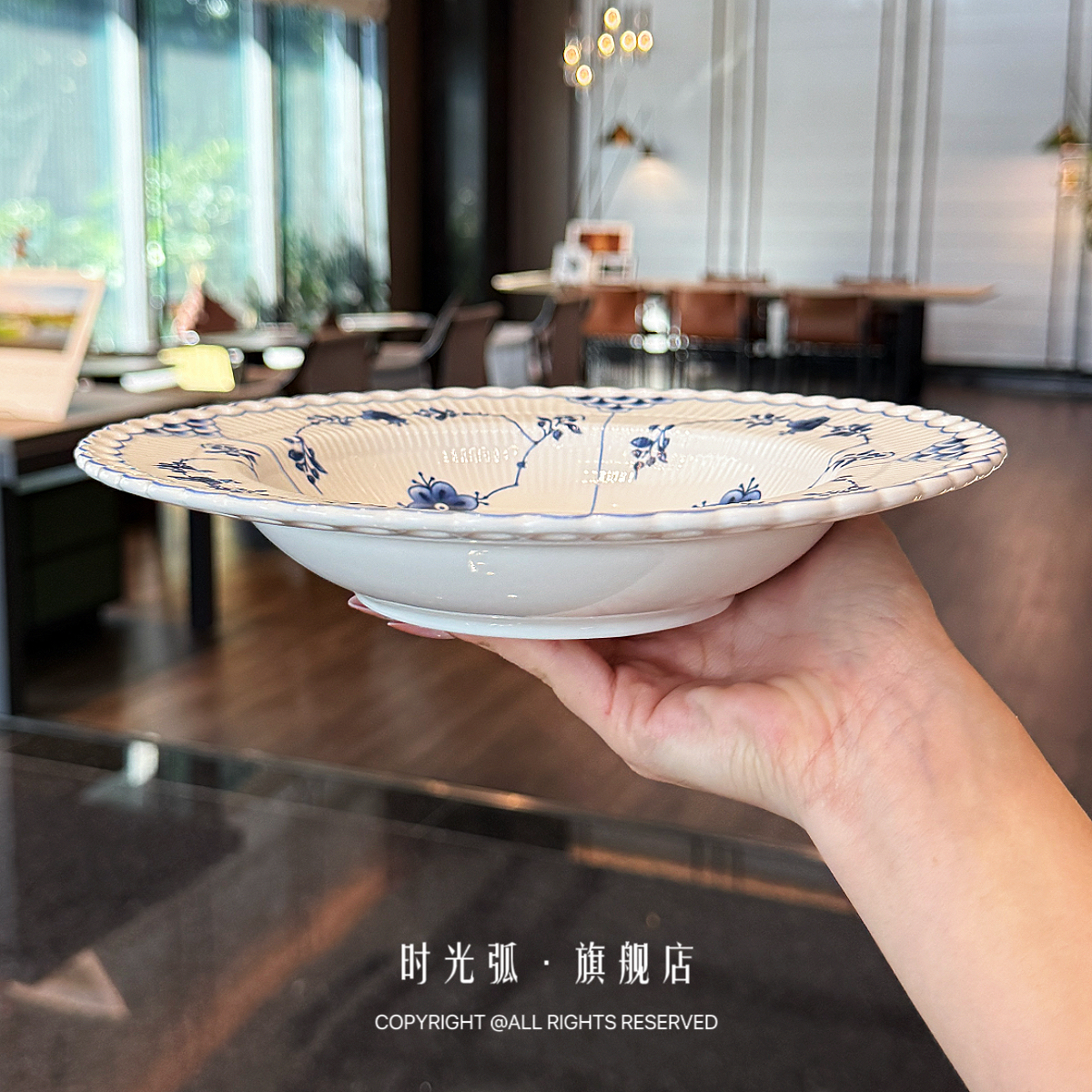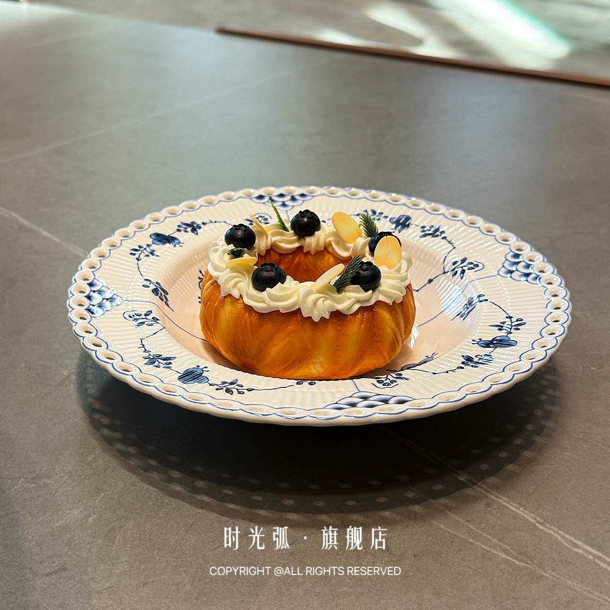 「出欧洲蓝色全蕾丝唐草」奶油深汤盘复古浮雕菜深盘子西餐意面盘