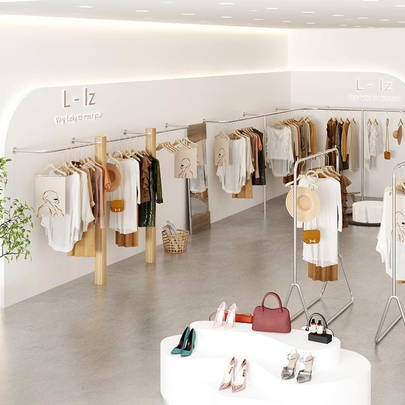 女装店货架展示架童装店实木原木陈列架子上墙不锈钢服装店挂衣架