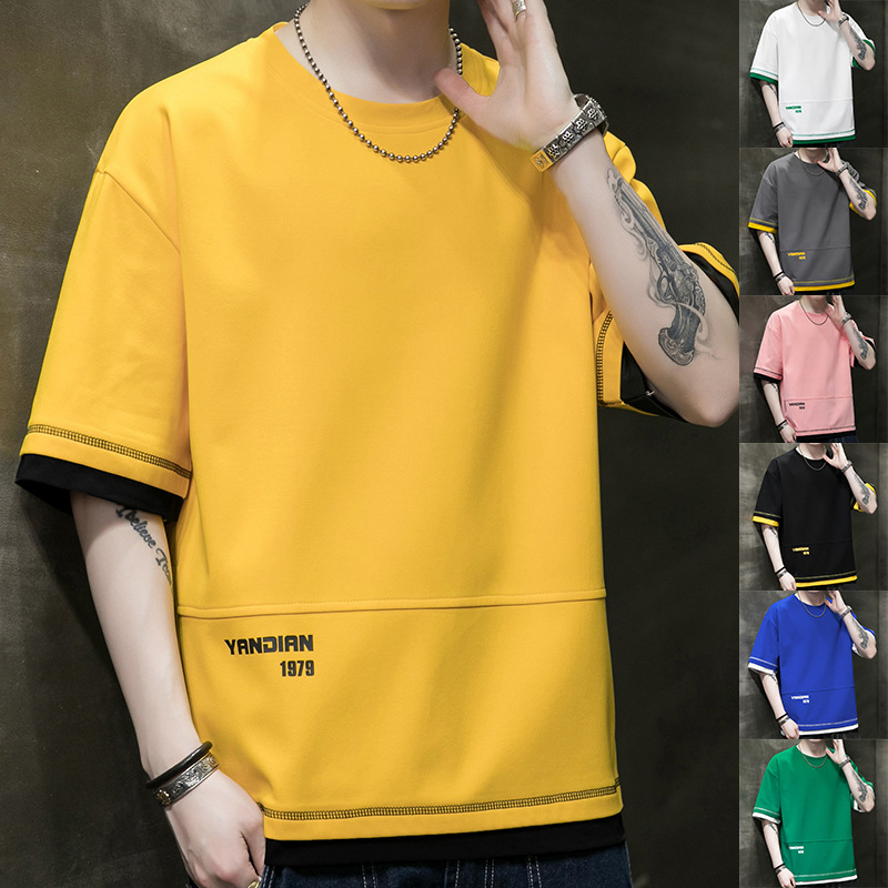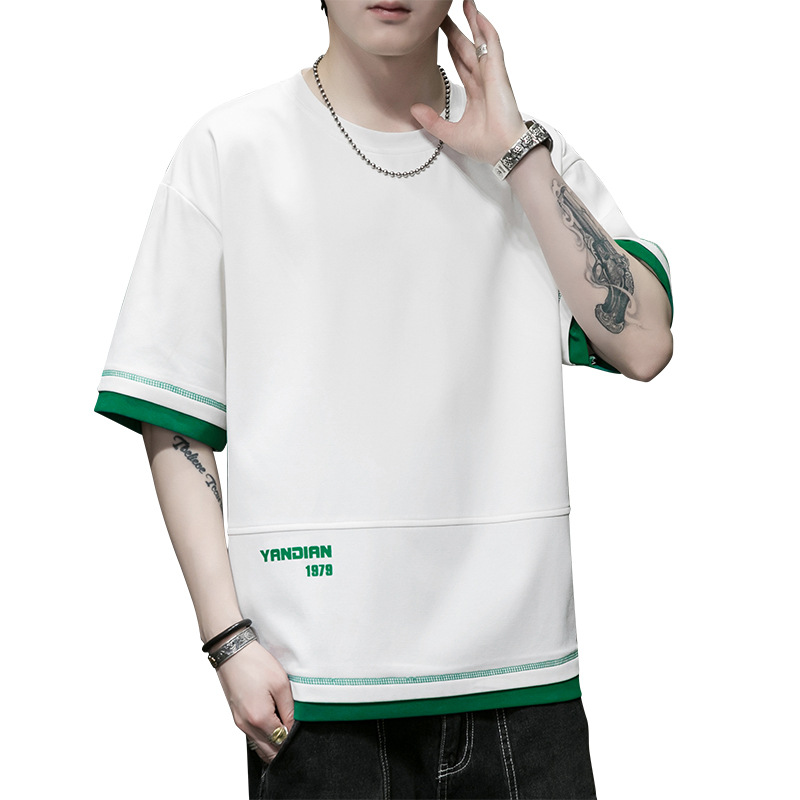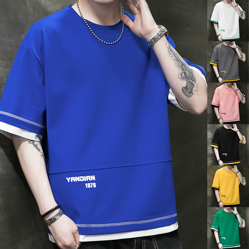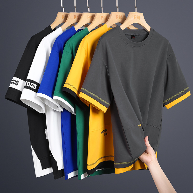 男士夏季新款T恤潮流青年时尚休闲简约百搭日系圆领宽松短袖上衣