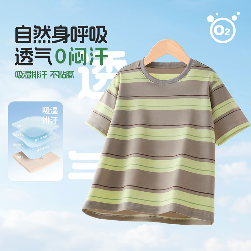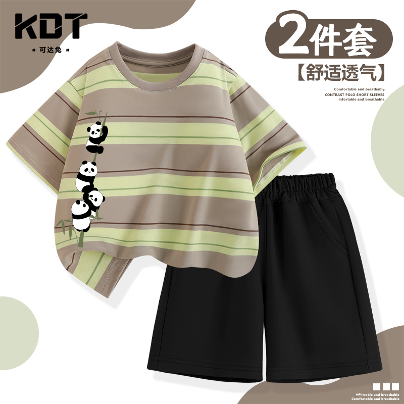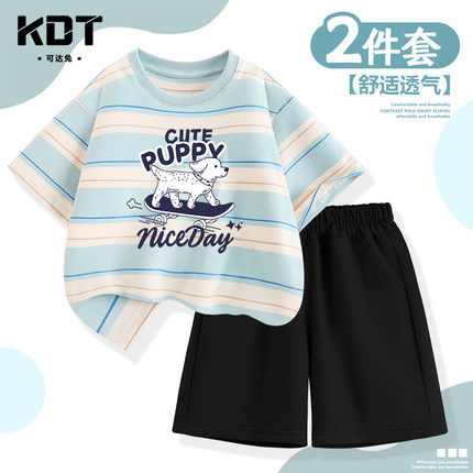 可达兔男童休闲套装夏季2025新款儿童纯棉条纹短袖洋气男孩体恤衫