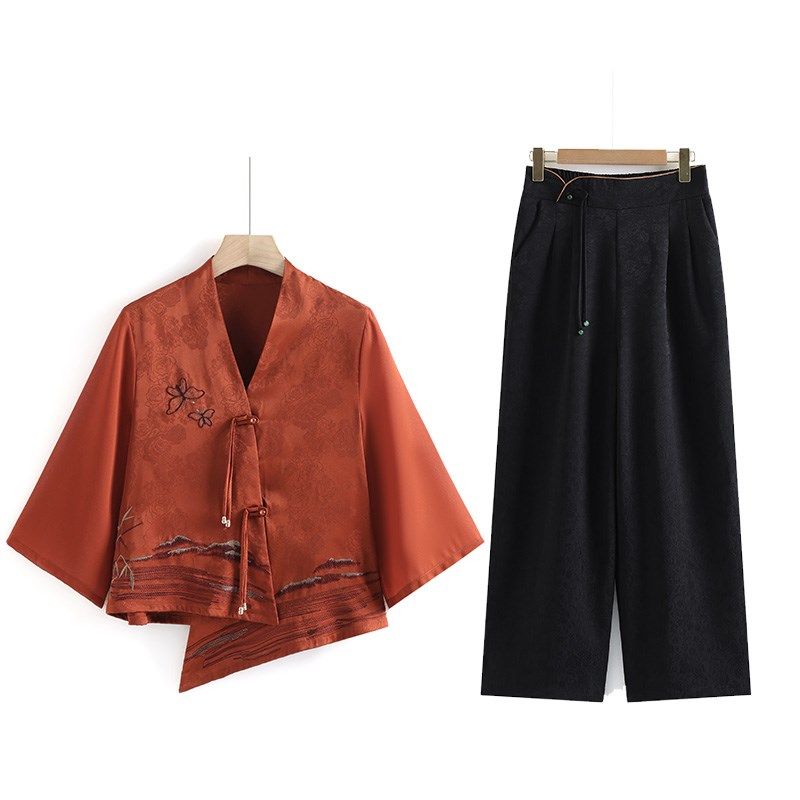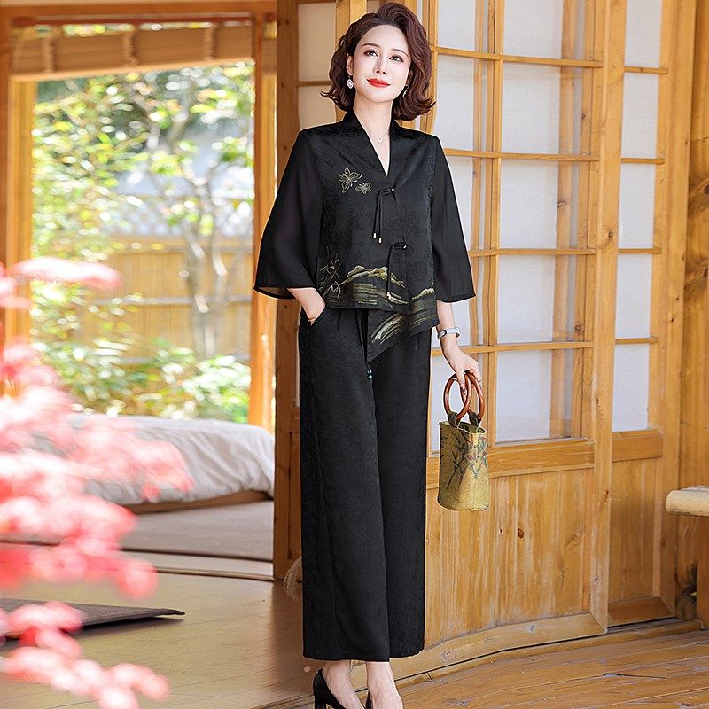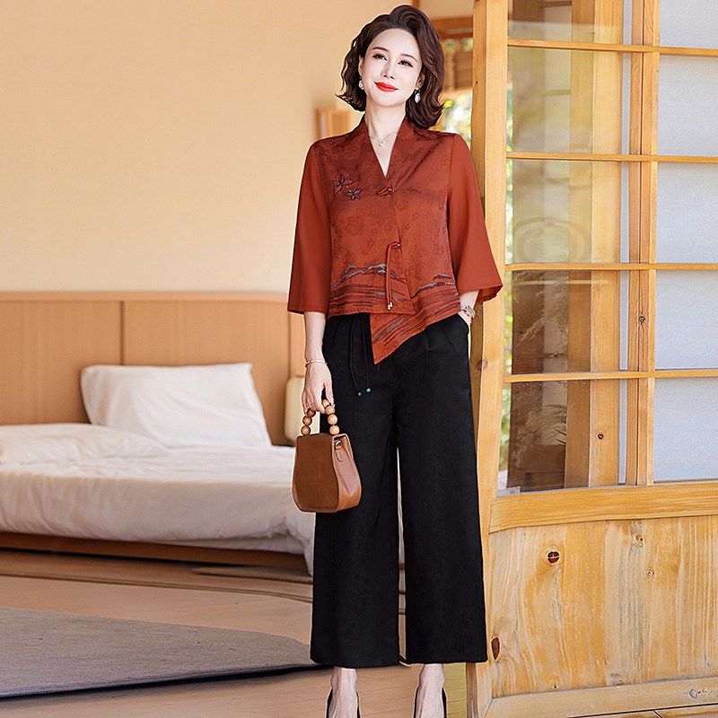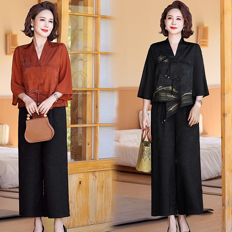 母亲节妈妈夏装新中式套装中年女装民族风短袖上衣中老年人两件套