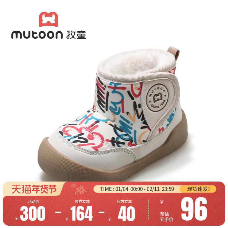 牧童童鞋涂鸦宝宝雪地靴男童2025冬季新款加厚加绒保暖女童大棉鞋
