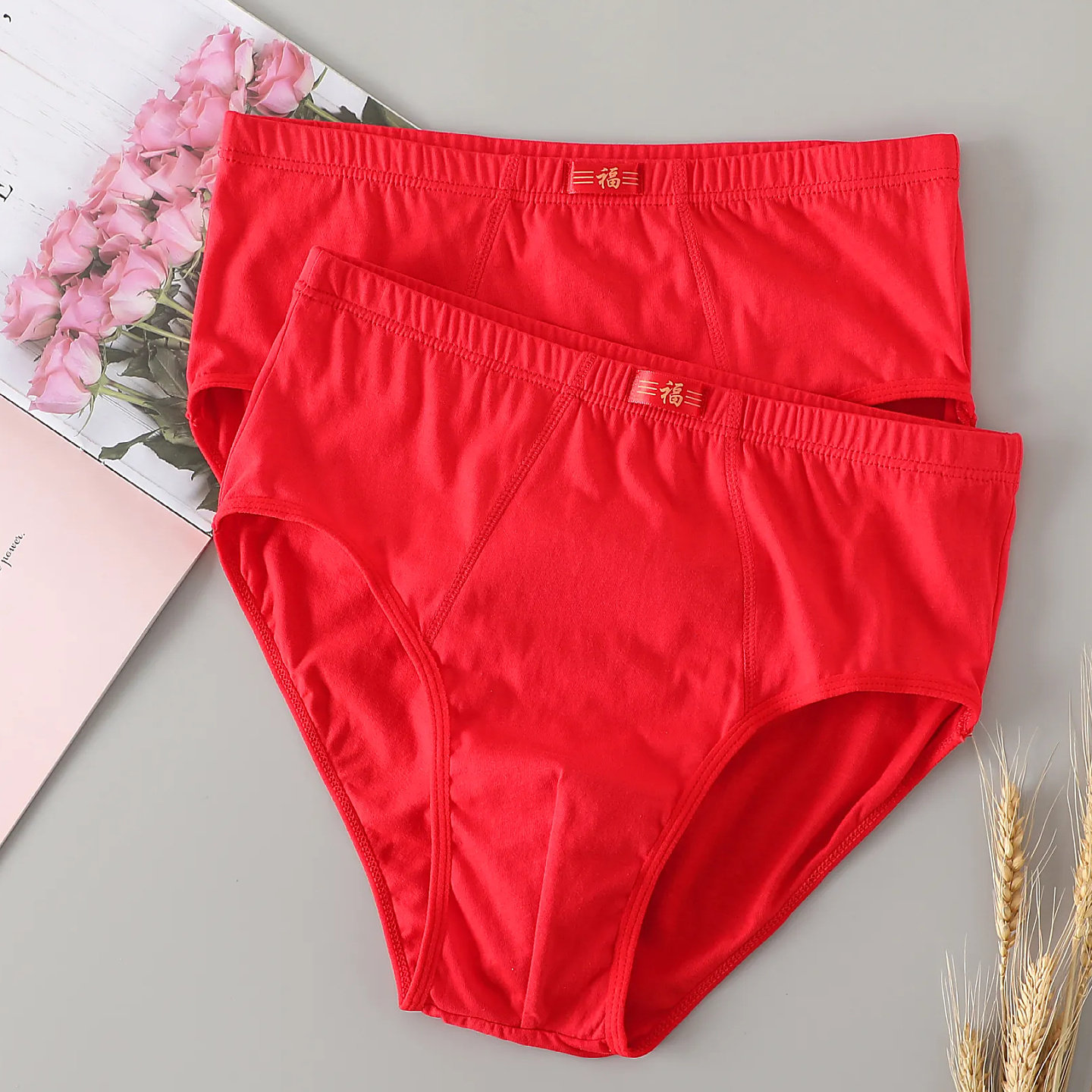 三角裤男内裤纯棉红色本命年结婚