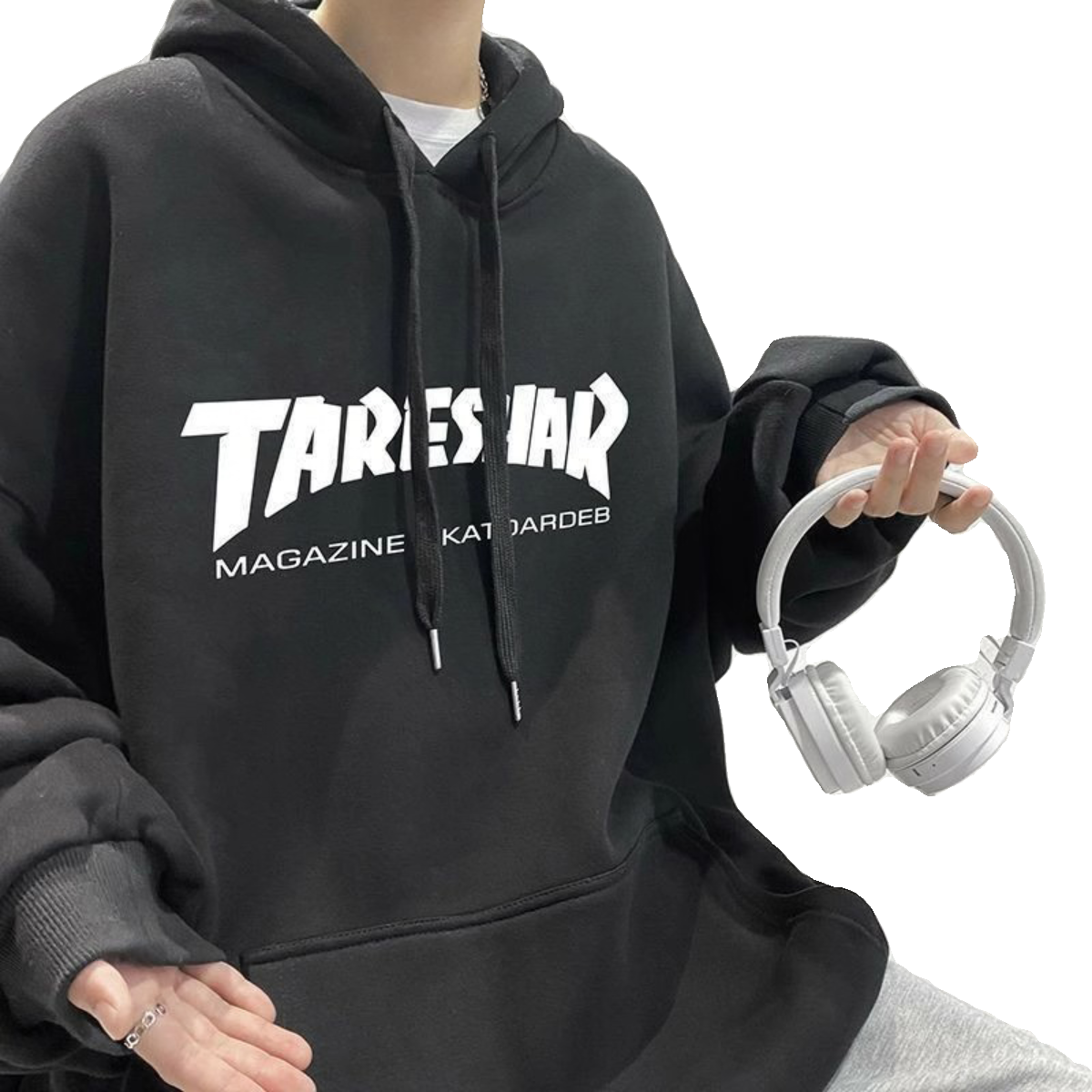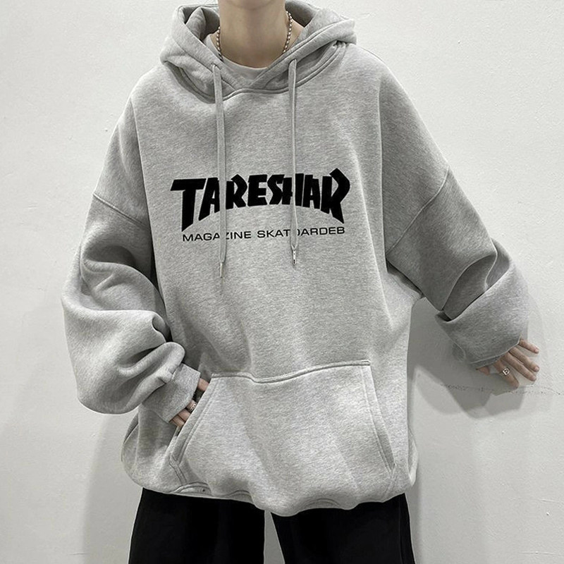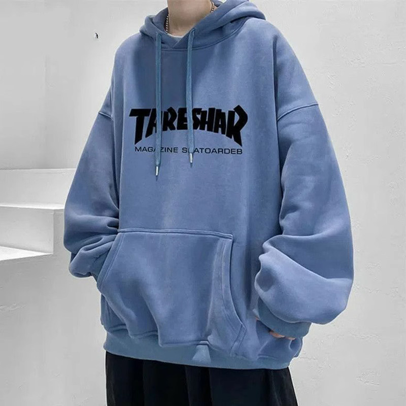 美式hiphop卫衣男潮ins春秋季休闲薄外套宽松加绒连帽青少年帽衫
