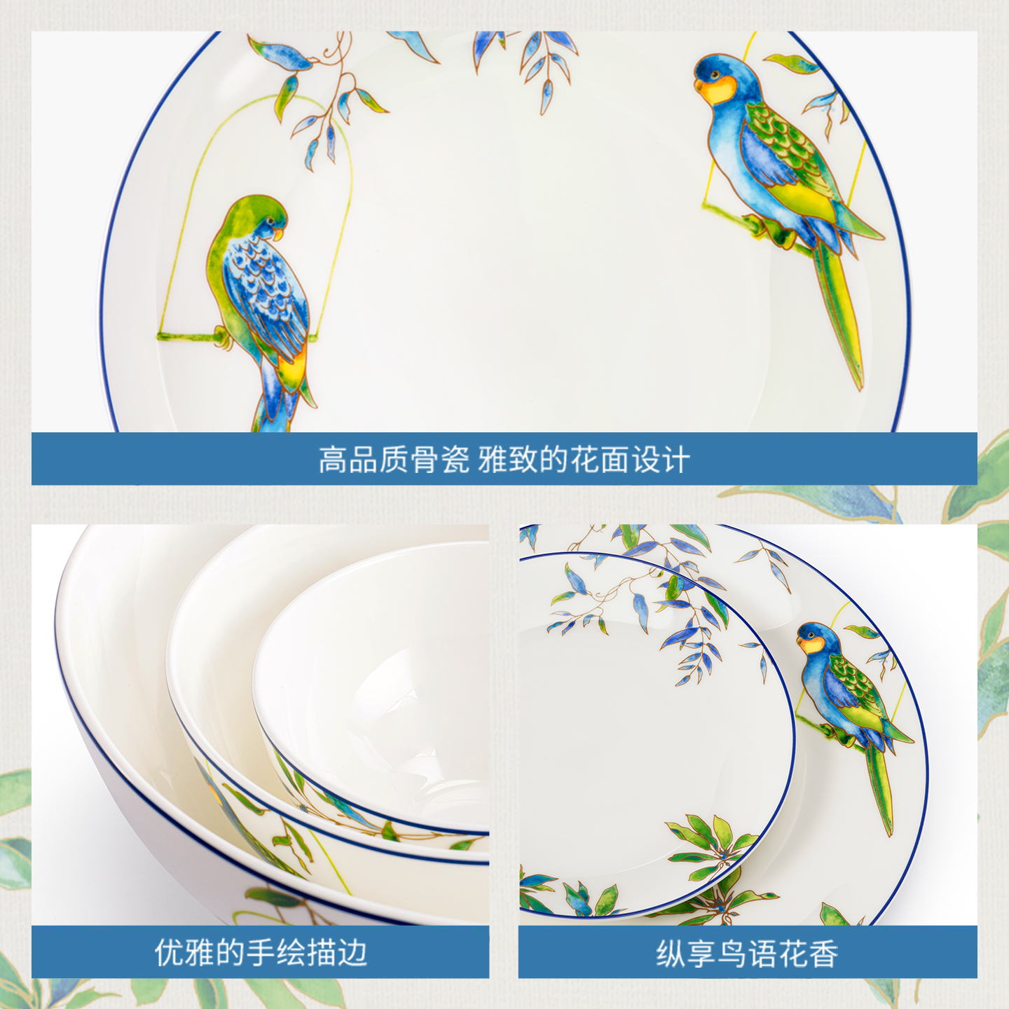 玛戈隆特鹦鹉散件骨瓷餐具饭碗汤碗面碗勺子新婚结婚碗碟套装家用