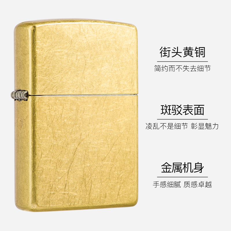 【自营】Zippo正品防风煤油打火机街头黄铜送男友礼物芝宝纯铜