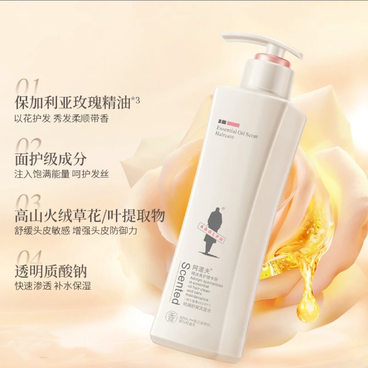阿道夫洗发水正品套装沐浴露护发素套装800g去屑轻柔留香持久500g