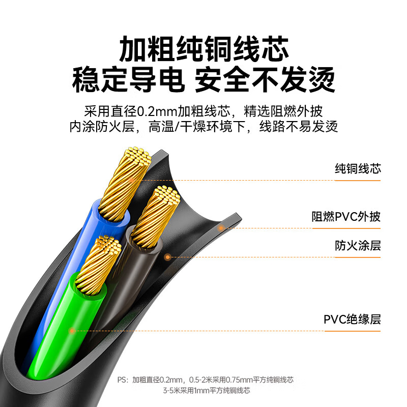 山泽三芯/两芯电源线 三孔/两孔8字电源线连接线延长线品字尾插头