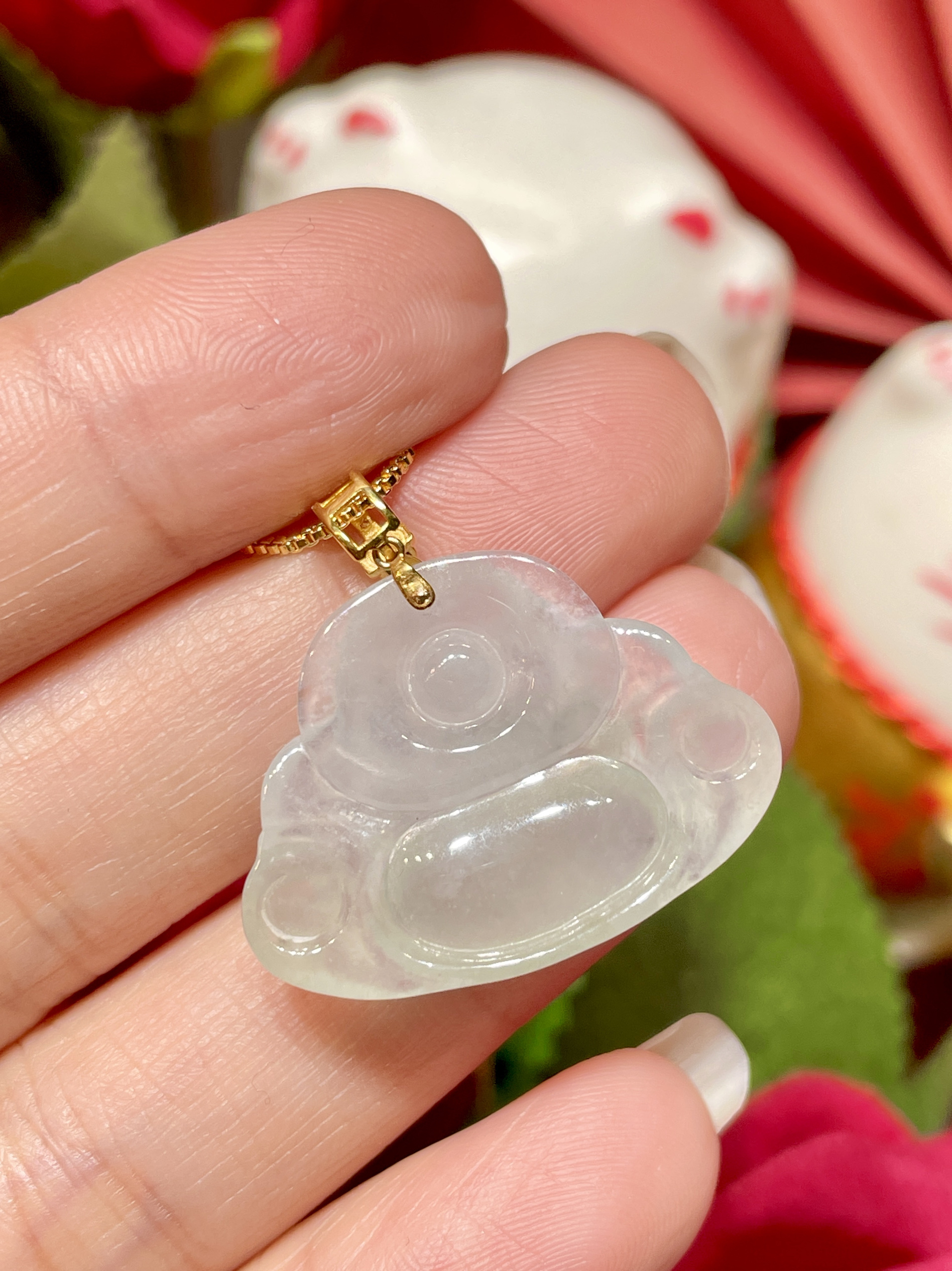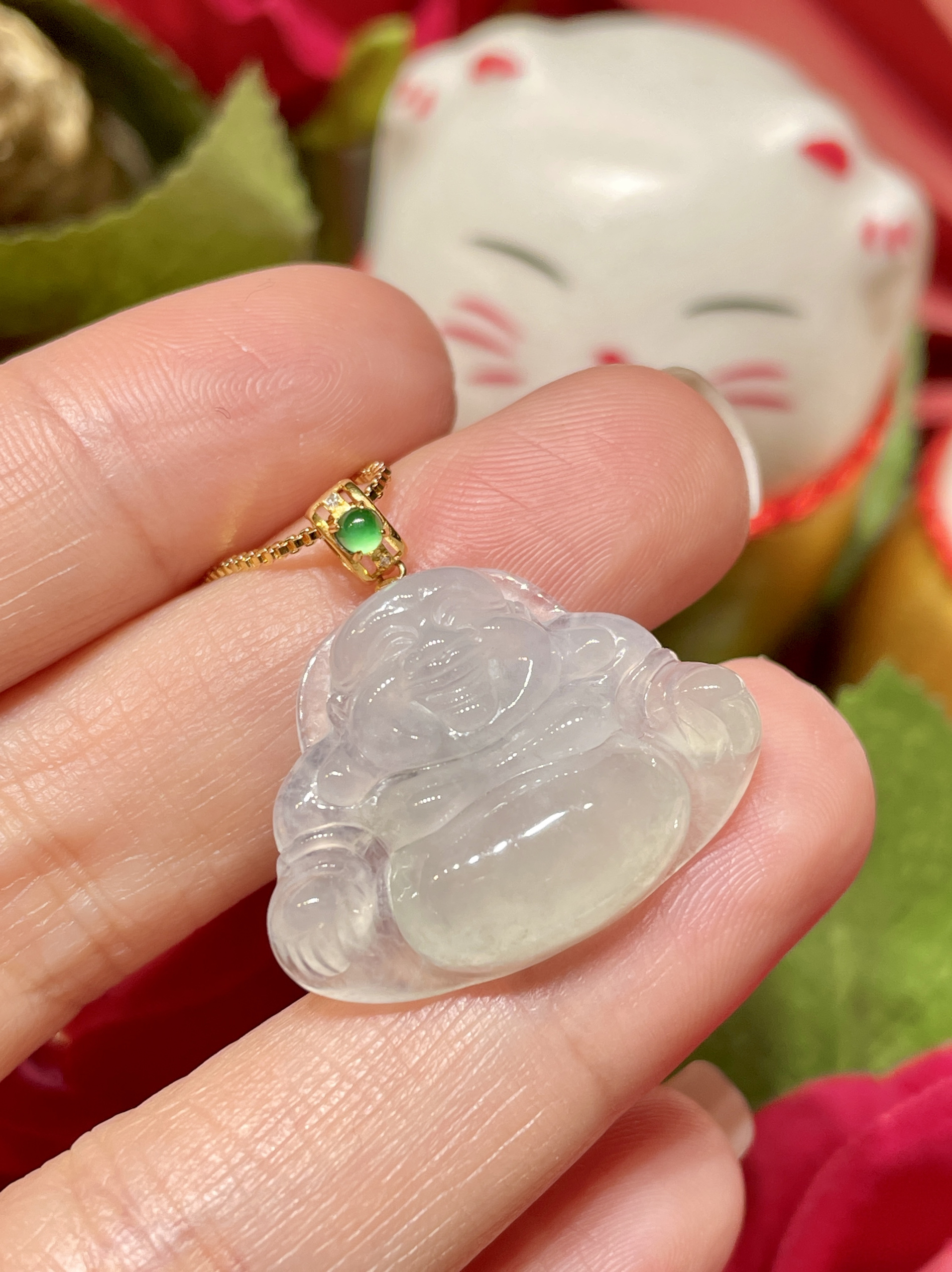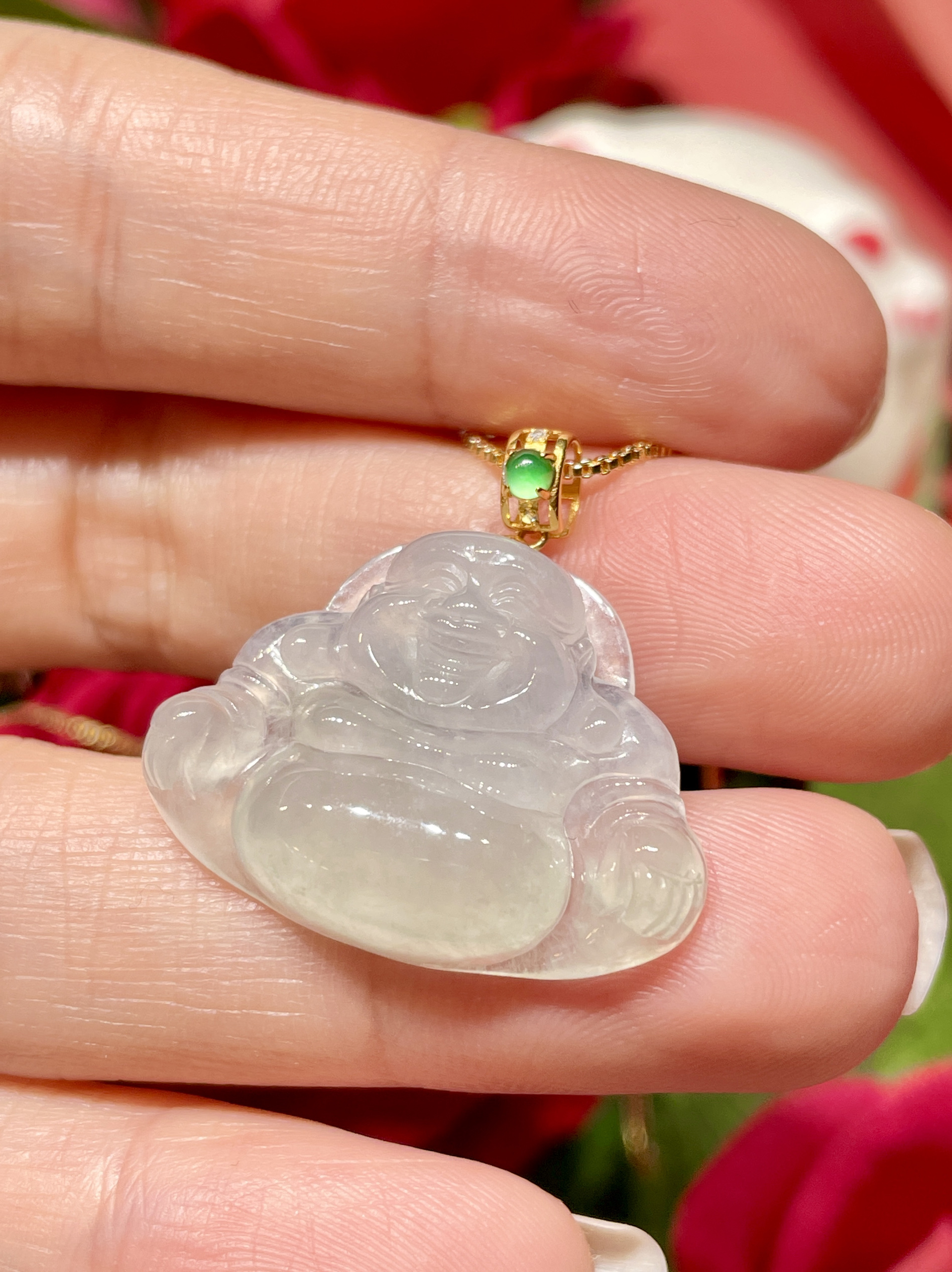 冰种缅甸翡翠A货正品冰种佛公吊坠18k金扣头镶嵌钻石时尚大方百搭