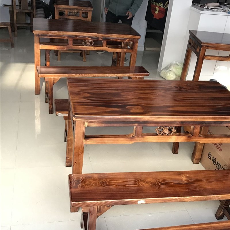 碳化实木饭店餐桌椅组合快餐店小吃餐厅餐馆烧烤面馆排档食堂桌椅