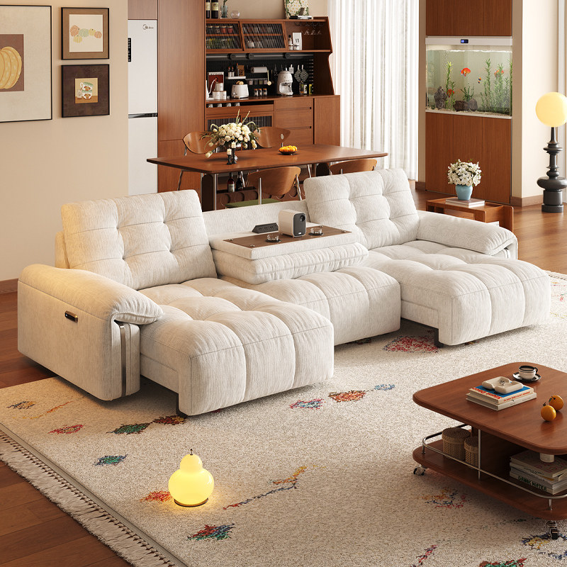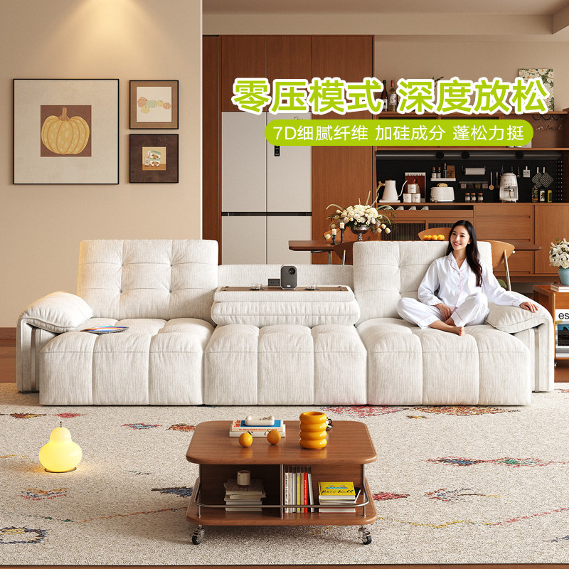 奶油风电动沙发床小户型复古风新款多功能伸缩直排布艺沙发客厅