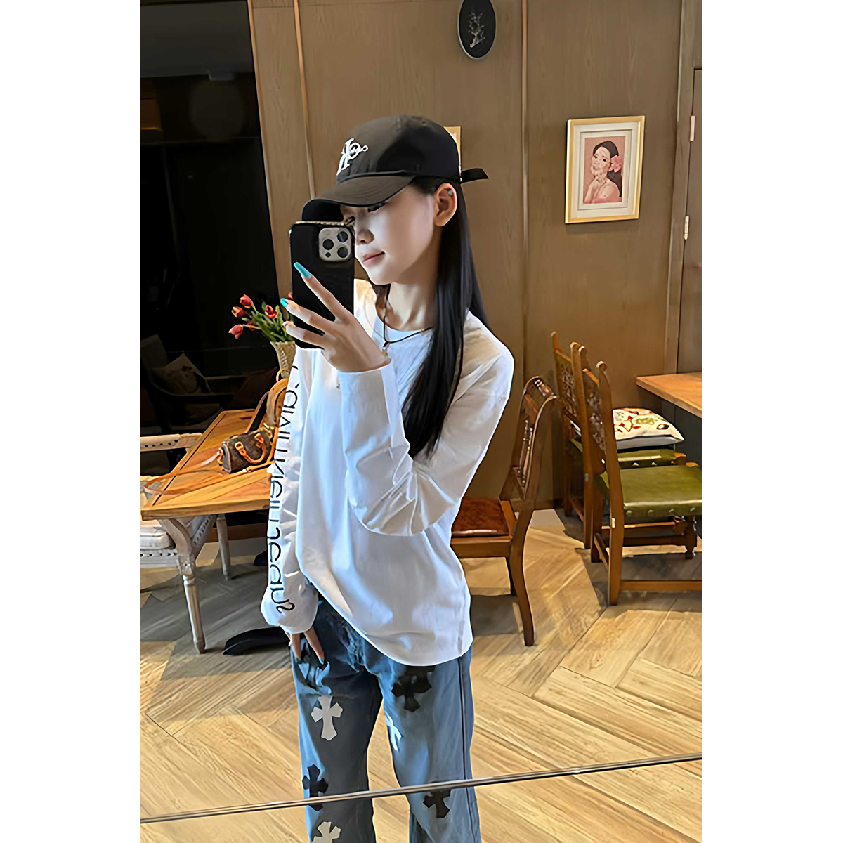 白色字母印花长袖t恤打底衫女春秋季大童初中高中学生设计感上衣
