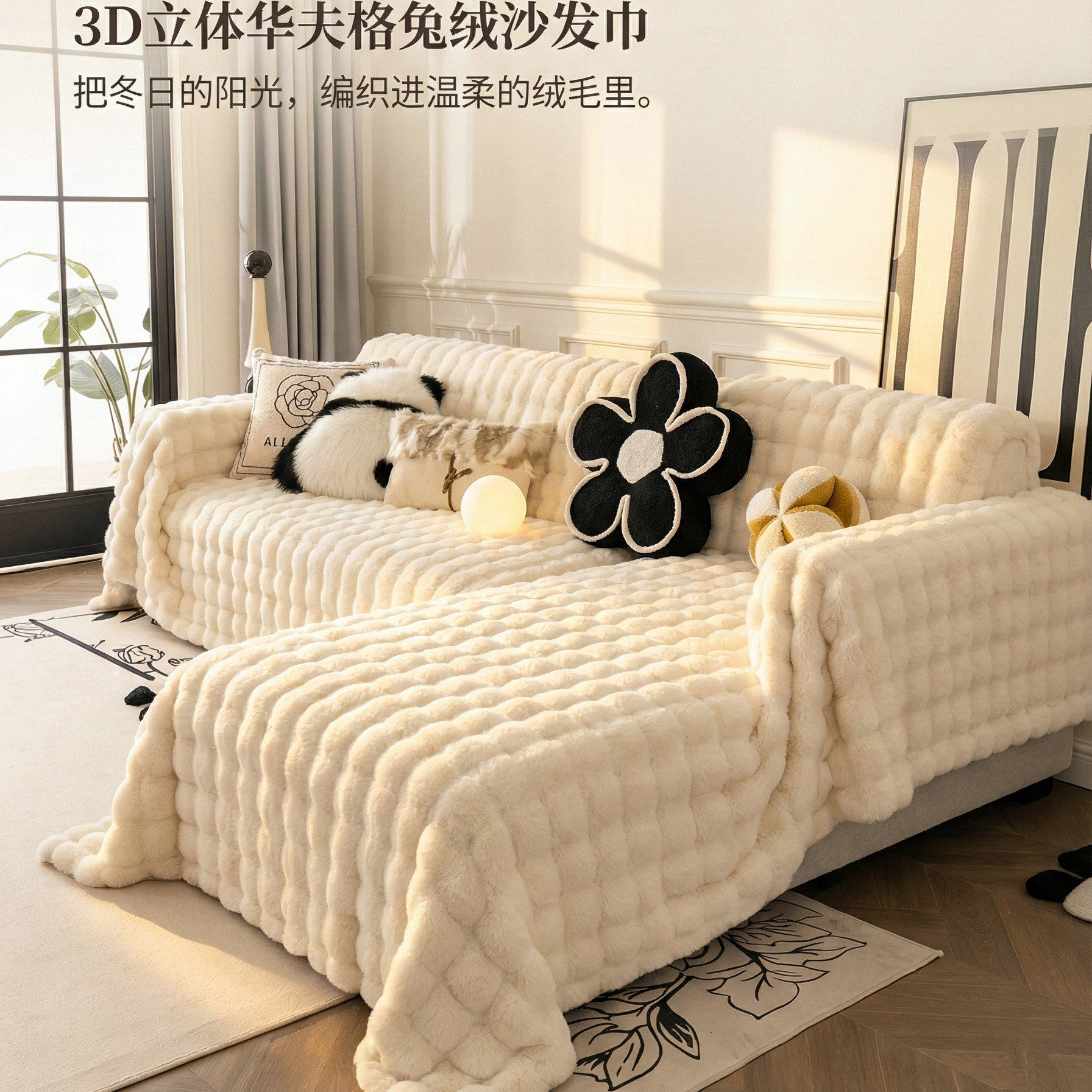 贵妃位兔毛绒沙发盖巾