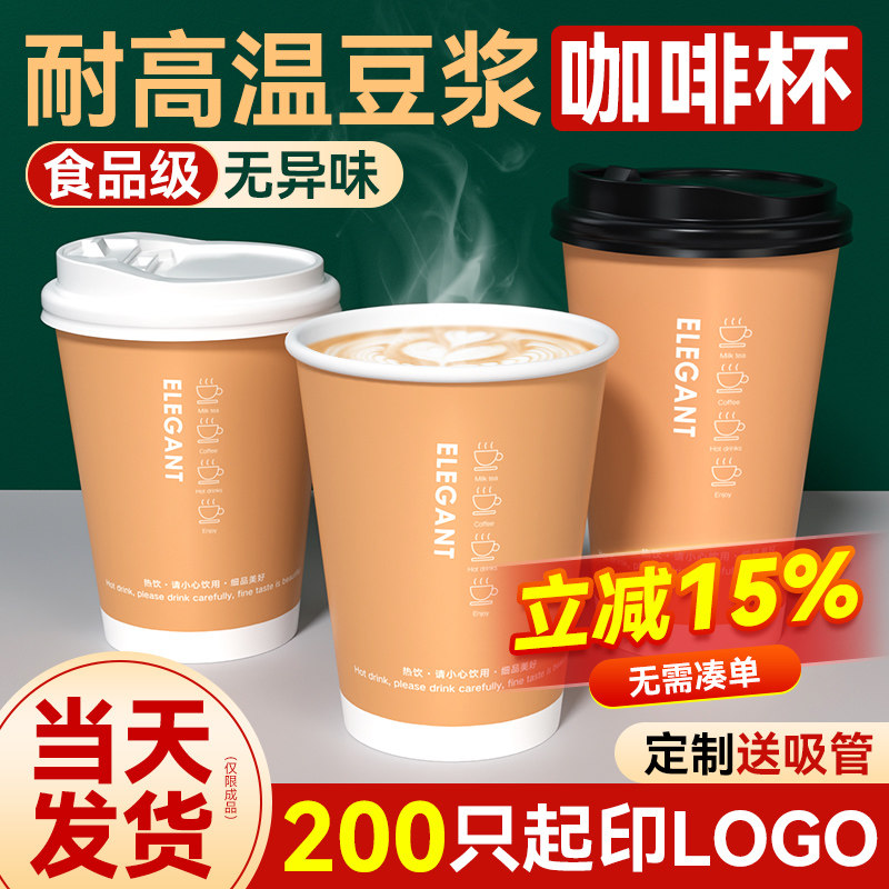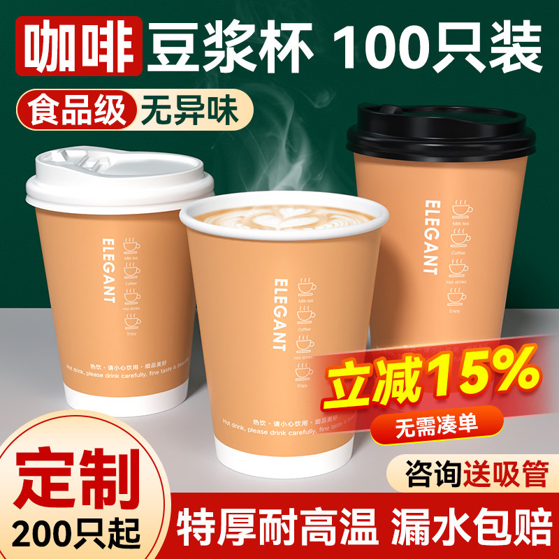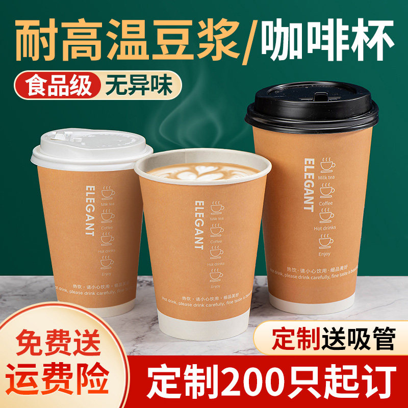 一次性咖啡杯子带盖纸杯家用外带加厚热饮打包奶茶杯豆浆杯定制