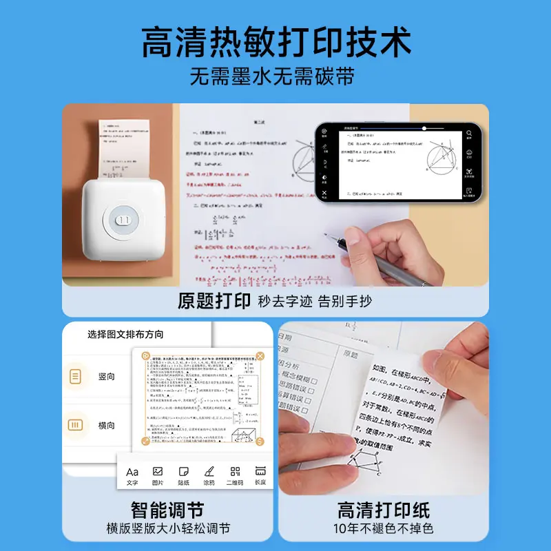 芯烨CP3错题打印机家用打印机学生便携蓝牙无墨学生作业错题喵喵
