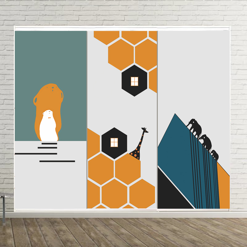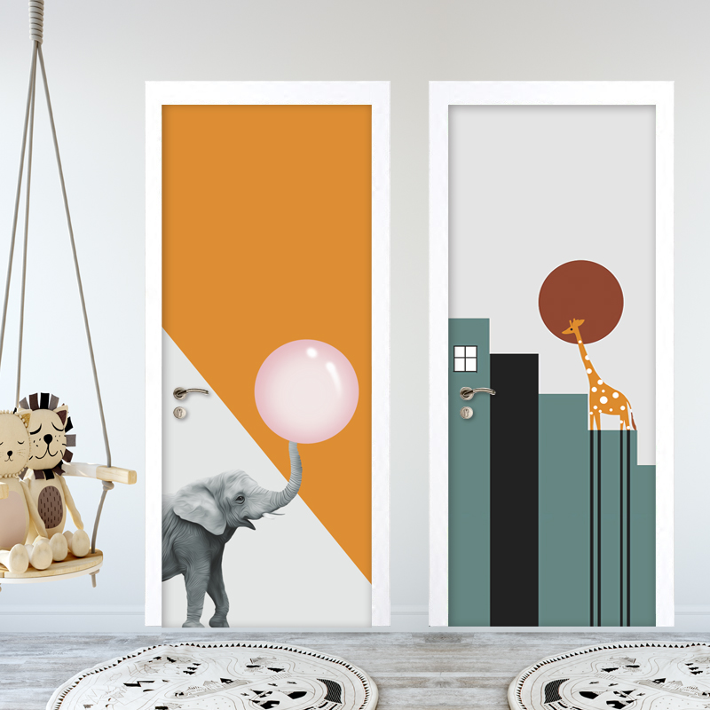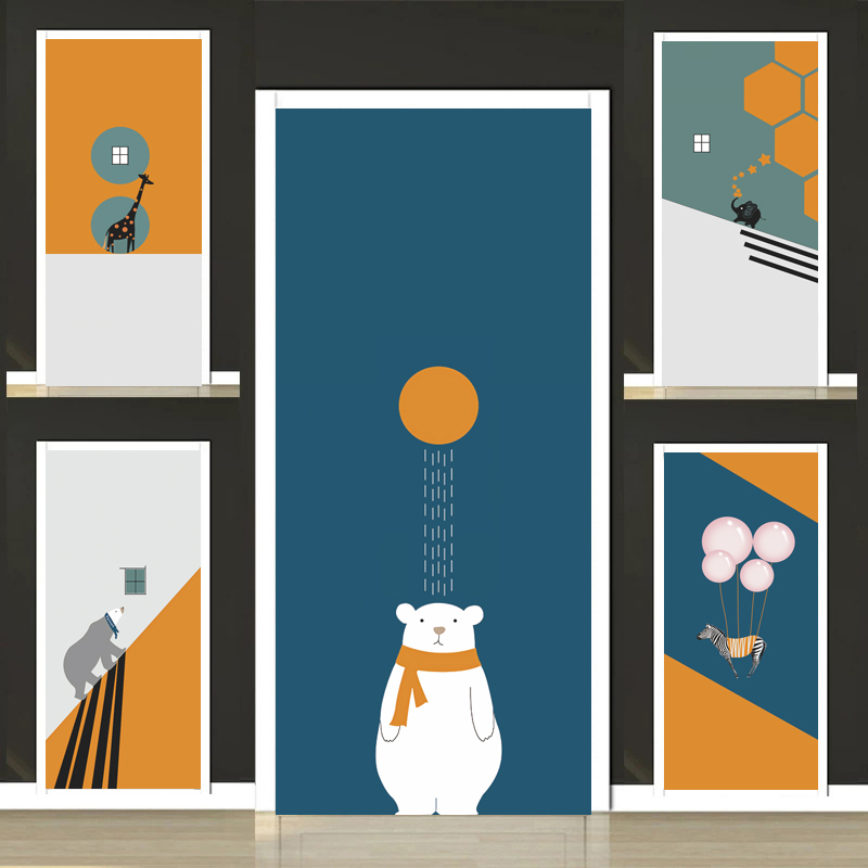简约卡通动物儿童房装饰衣柜贴纸翻新门贴纸整张自粘玻璃贴画墙贴