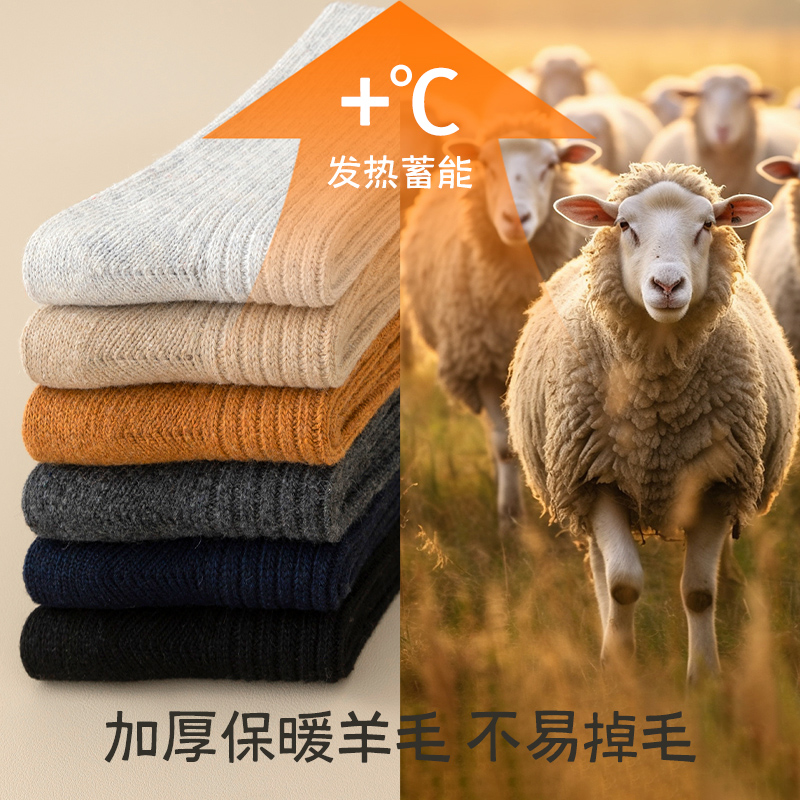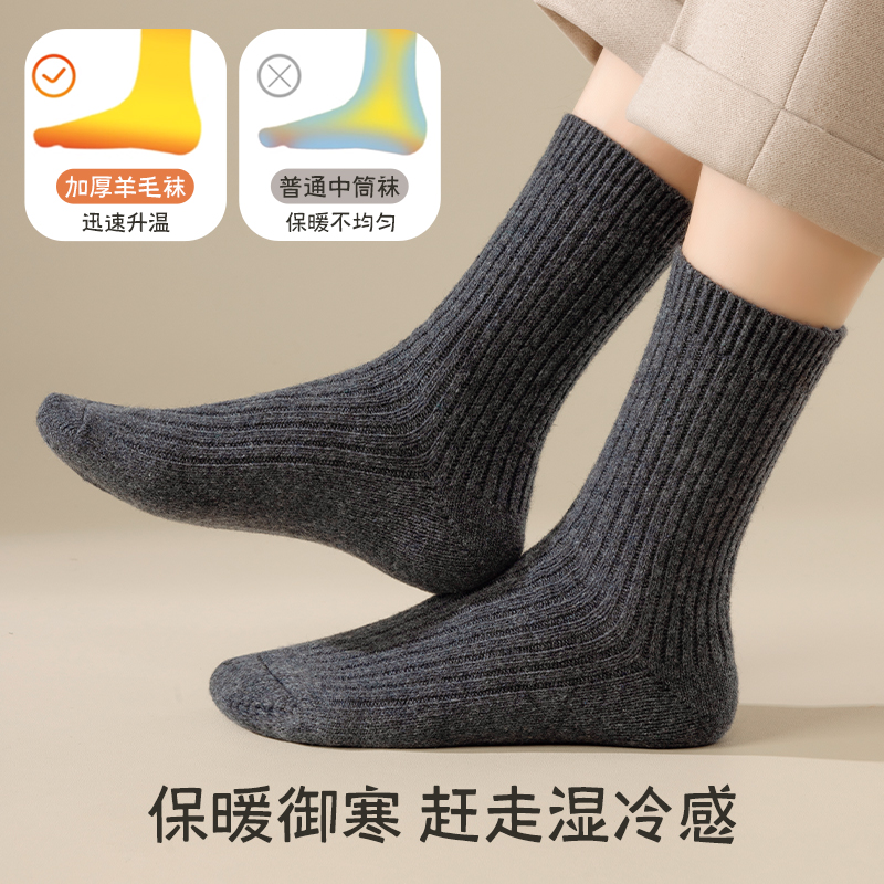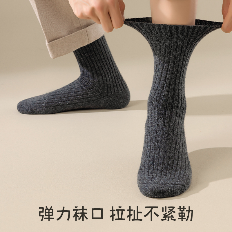 羊毛袜子男款秋冬季加厚中筒袜保暖防臭无骨长袜黑色长筒棉袜冬天