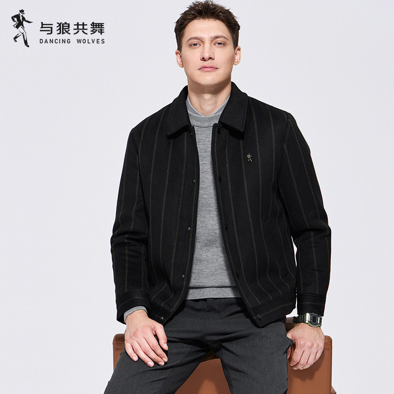 【羽绒内胆】与狼共舞翻领夹克男2025秋冬新款羊毛呢保暖加厚外套
