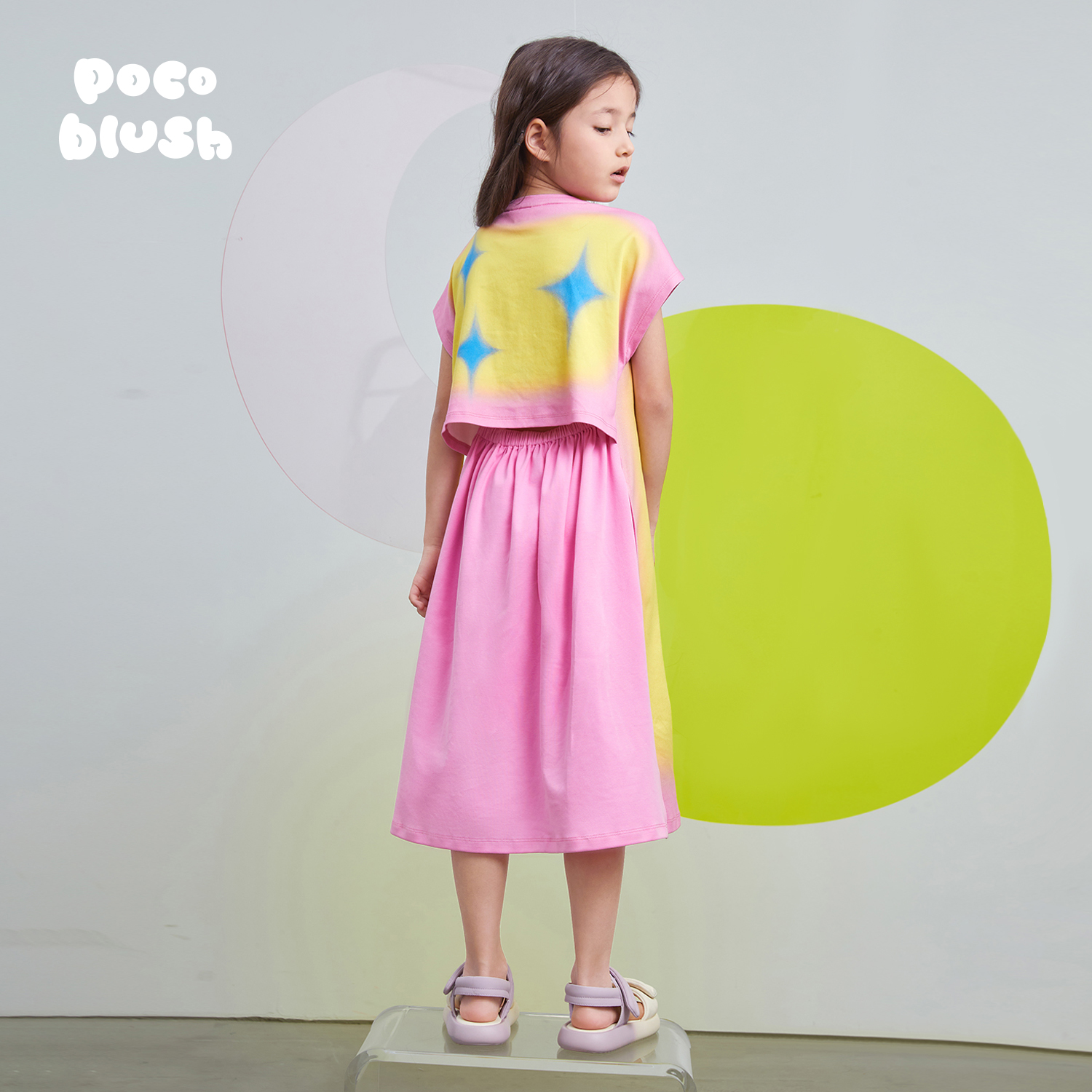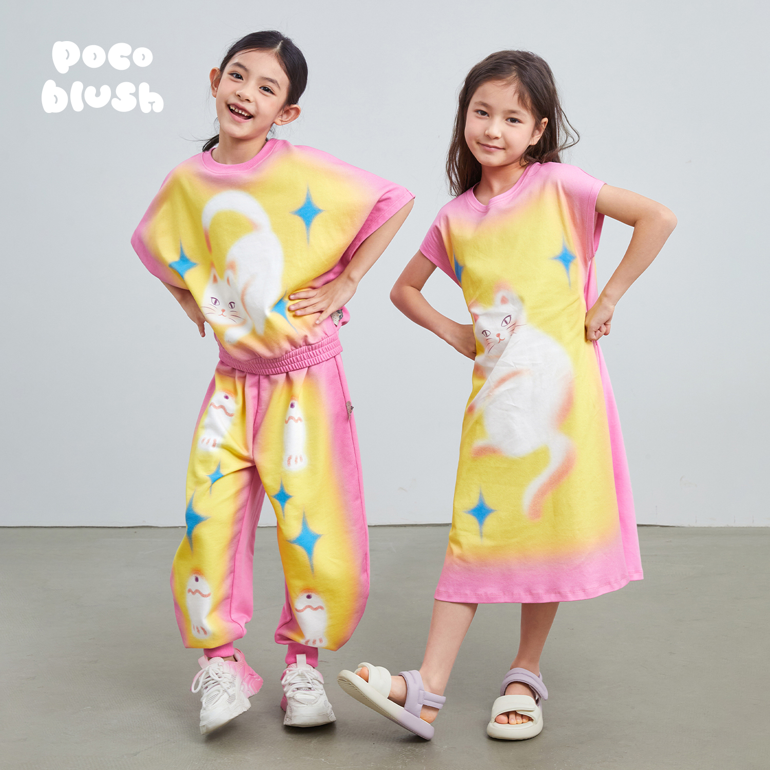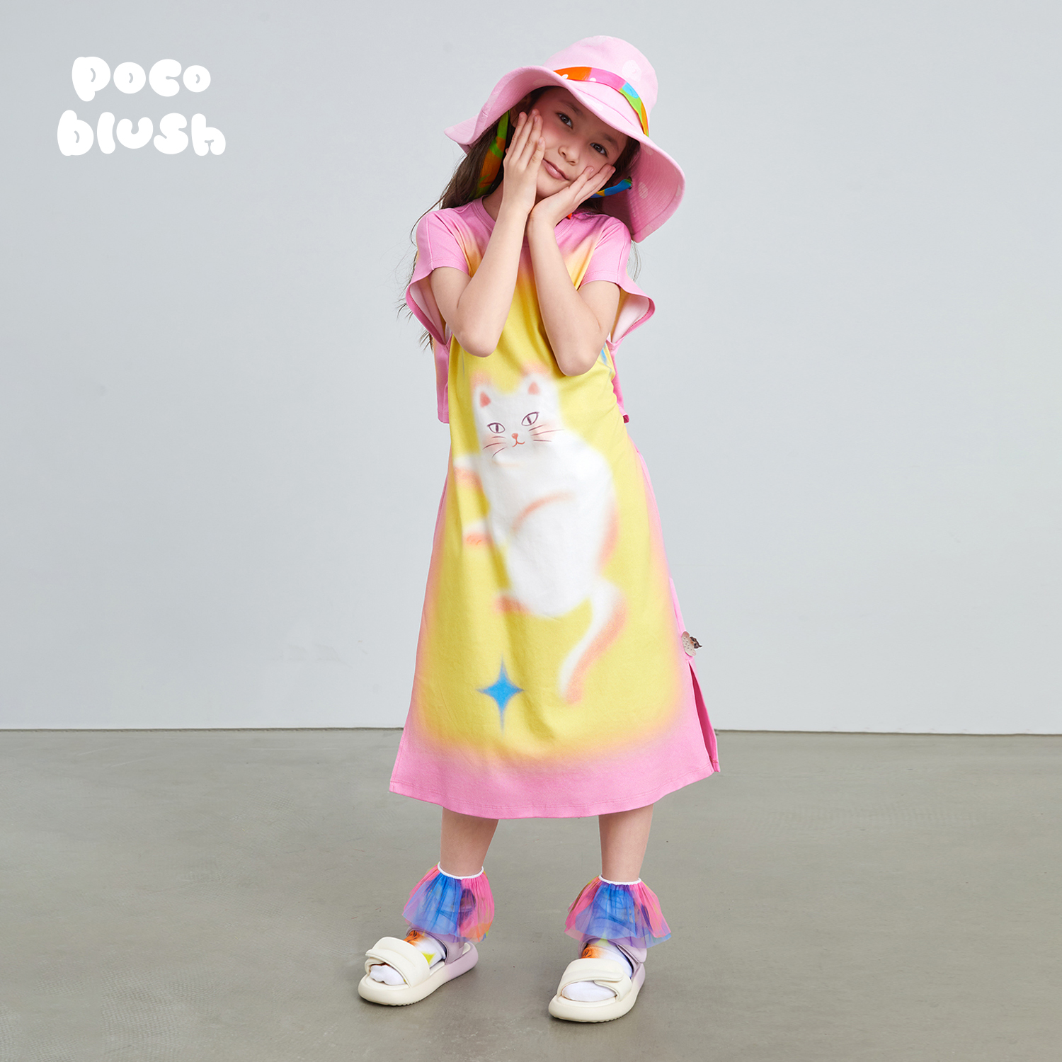 pocoblush原创设计星空下的小猫连衣裙女童夏季新款小女孩T恤长裙