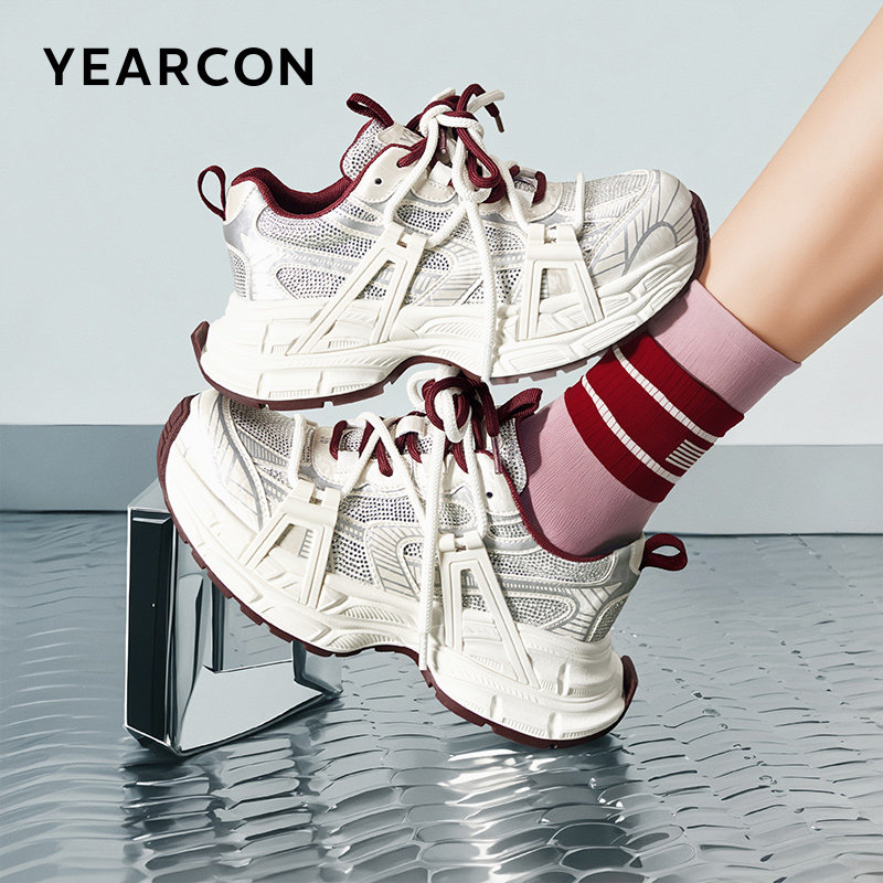 意尔康女鞋2025新款秋季老爹鞋女厚底增高休闲鞋百搭运动鞋子时尚