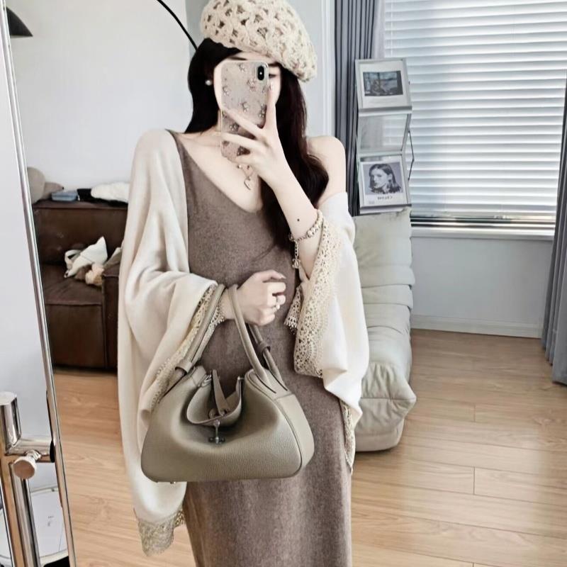 蕾丝花边羊毛针织披肩外搭开衫女秋冬围巾斗篷配旗袍裙子毛衣外套