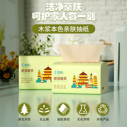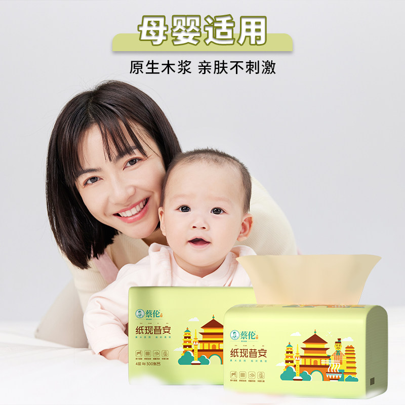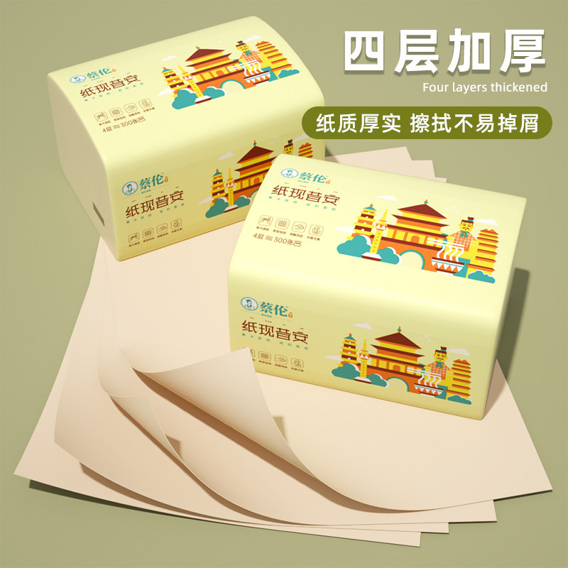 蔡伦擦手纸实惠装卫生纸原生纸四层餐巾纸巾轻柔加厚软包抽纸家庭