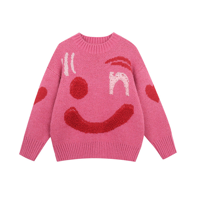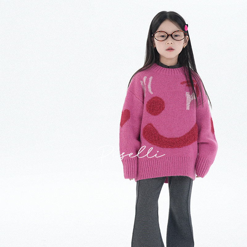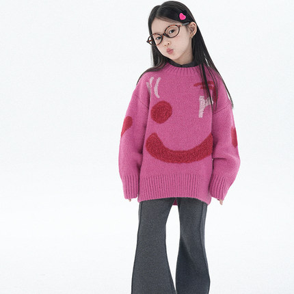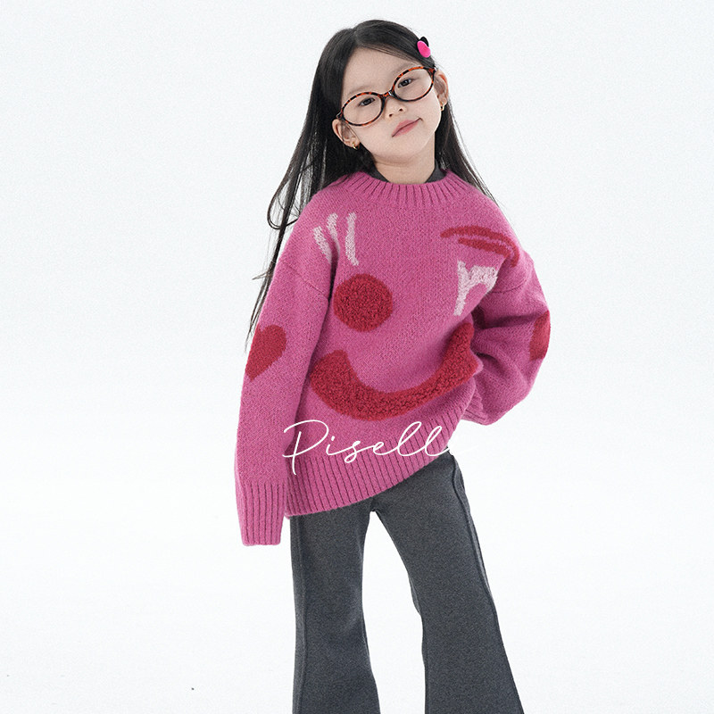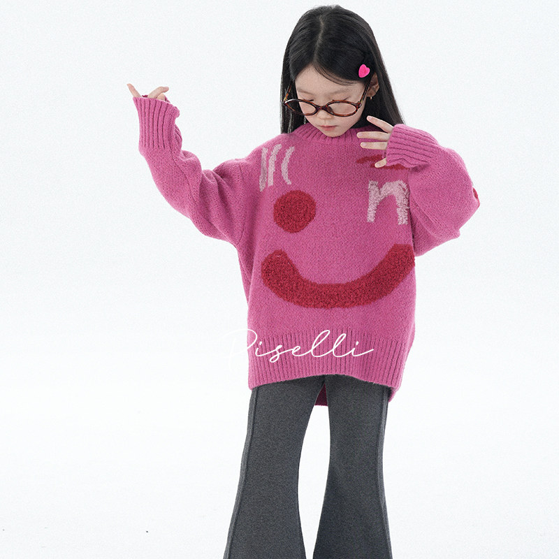 PISELLI史豌豆女童笑脸毛衣2025秋冬新款中大童韩版宽松针织上衣