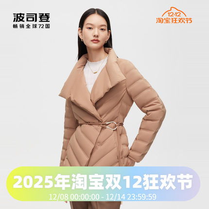 波司登女装鹅绒轻商务简约翻领舒适零压环扣腰带修身羽绒服