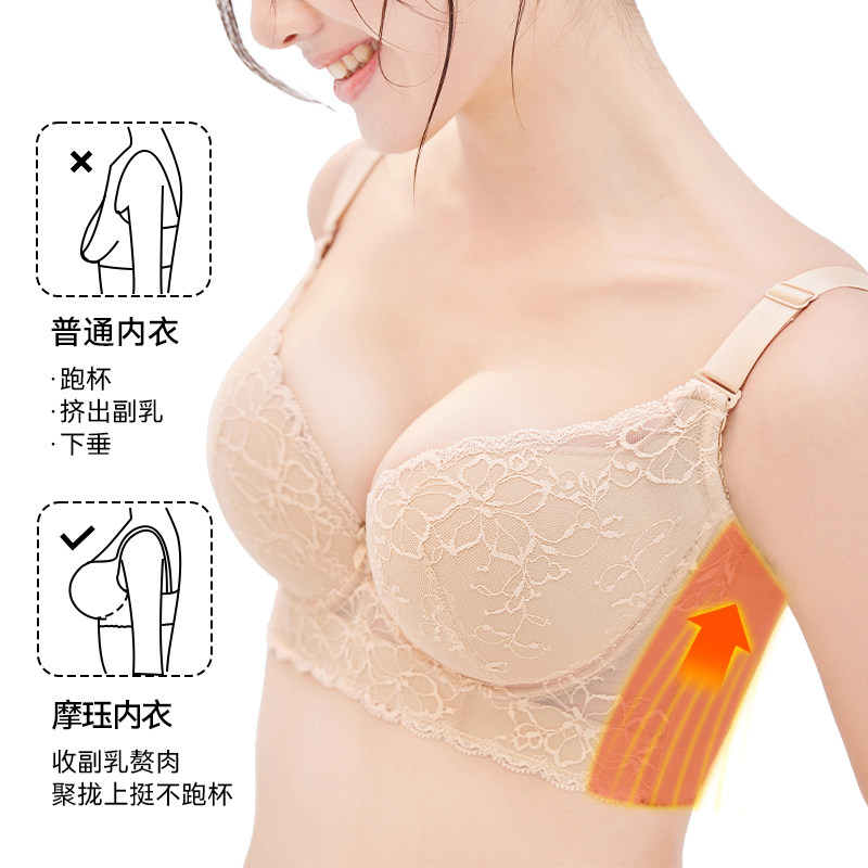 显胸大内衣女聚拢收副乳显大厚款胸罩超厚小胸加厚塑形调整型文胸
